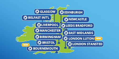 With Jet2holidays, you can fly from 14 UK airports to more than 75 sun-soaked and city destinations across Europe and beyond. With airports located conveniently around the country, you can choose the one that suits you best.
