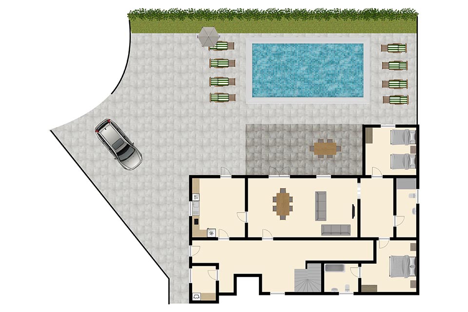 The floor plan of the villa is shown in the diagram above
