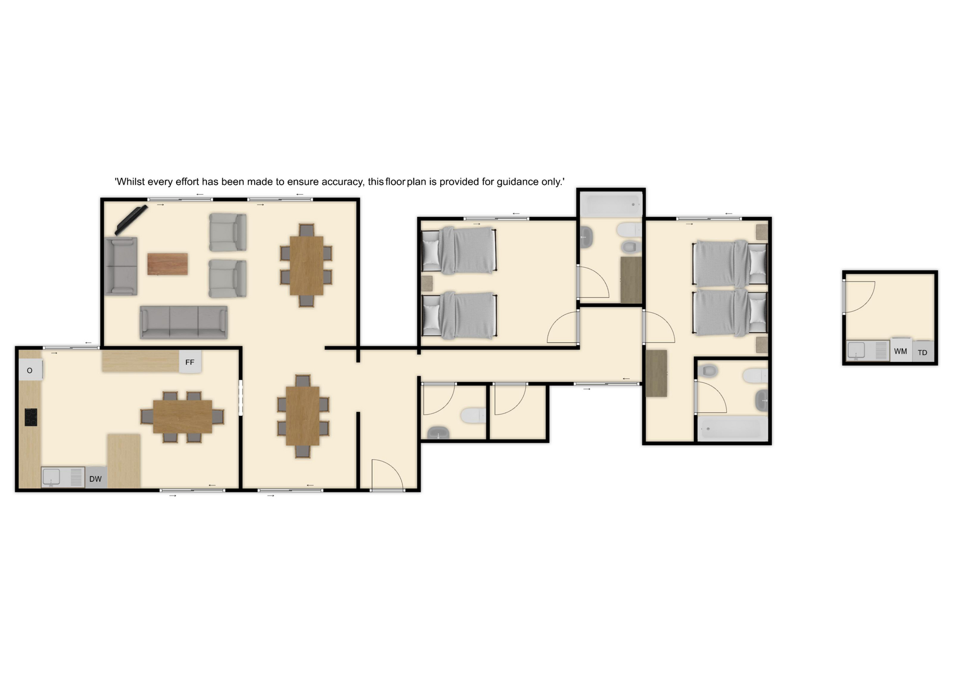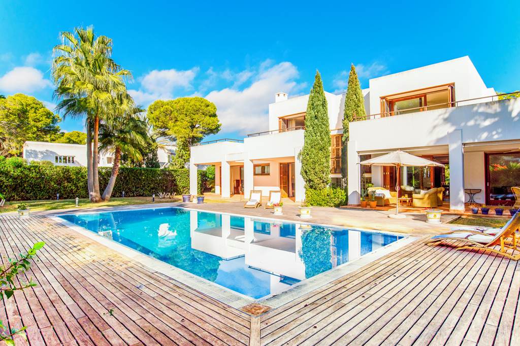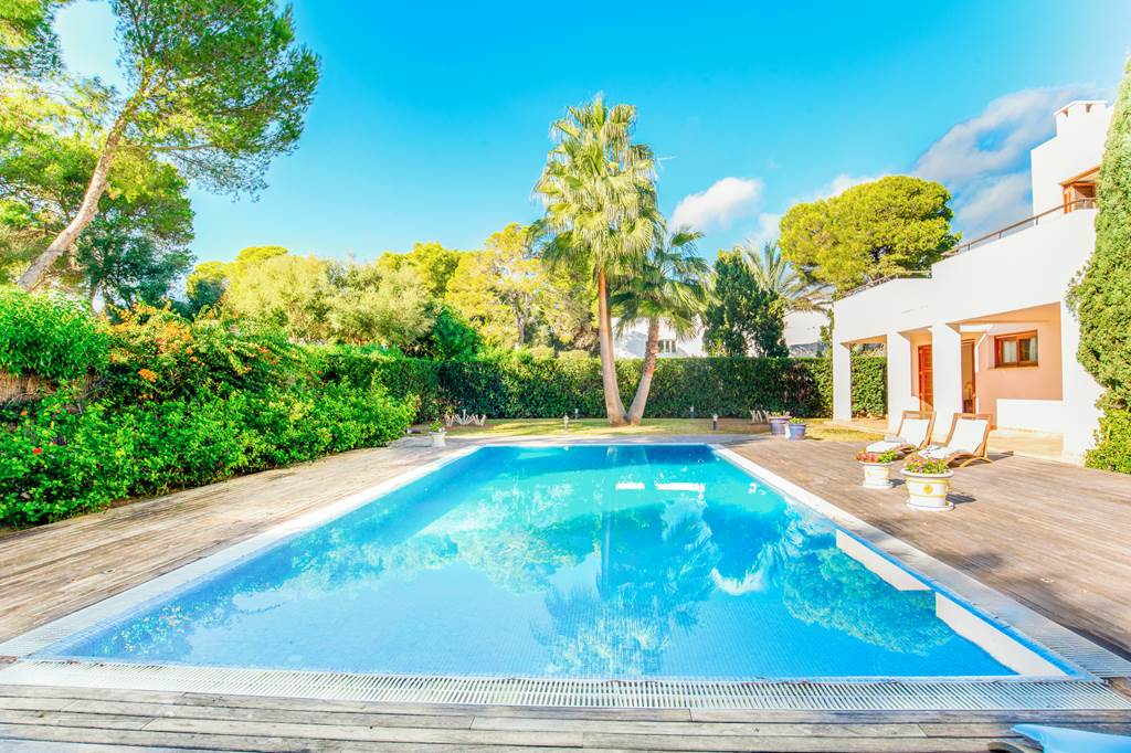 We highly recommend this contemporary two-storey villa for those who wish to be within walking distance of a sandy beach and Cala D'Or’s impressive selection of shops, restaurants and cafés. Most of the ground floor is open plan and the interiors are well-appointed, with all the mod cons necessary for a comfortable villa holiday in Majorca. There is a spacious living room with access to the terrace/pool, a kitchen with a dining table and a separate, more formal dining room with plush furnishings. Two bedrooms with ensuite bathrooms and huge glass doors leading to the pool complete this level. On the first floor there are a further two twin bedrooms, both with ensuite bathrooms and balconies overlooking the lovely grounds. Outside, the spacious pool and garden area is the ideal spot to relax and recharge. There is a covered terrace with a dining area and portable barbecue, where guests can test their culinary skills with locally sourced Majorcan products. In the centre of the garden is an inviting private pool surrounded by a decked terrace, complete with loungers where you can sunbathe and socialise in-between dips. Being located in the heart of Cala D’Or makes this the perfect villa for those who don’t want to think about having to drive anywhere. Stroll to the colourful promenade during the day, or lap up the sunshine at Cala Gran Beach. It’s got Blue Flag status and offers beautiful views, soft white sands and atmospheric eateries nearby. ... More