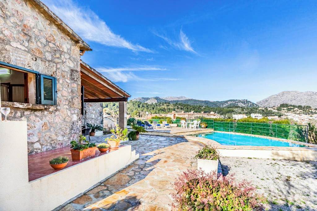 Nuzzled in the Mallorca countryside, Villa Can Bachio is a tranquil home-away-from-home to truly get away from it all. Set just outside of Pollensa, experience Mallorca at its most relaxing and take in the laid-back island vibe. Built to take advantage of the awe-inspiring landscape, Can Bachio is built in an elevated position on a pine-clad hillside, enjoying endless views of rolling green hills, pretty terracotta rooftops and verdant pine woodland. The outdoor area at Can Bachio ramps up the wow factor. As soon as you enter the curved stoned terrace, you’re instantly hit with the phenomenal vistas of the Mallorca scenery. The tempting pool is a blissful reprieve from the heat and directly overlooks the stunning landscape, where you can catch a glimpse of the panoramas during a refreshing afternoon swim. For dinner with a view, the alfresco dining table is perfect for watching the sunset whilst tucking into a feast nestled up on the brick barbecue. A treasure trove of Spanish charm, echoing the typical traditional architecture of the island with its gorgeous stone walls, green window shutters and terracotta roof tiles. The living space exudes a rustic charm, featuring solid wood furnishings, antique décor, and fresh white walls. ... More