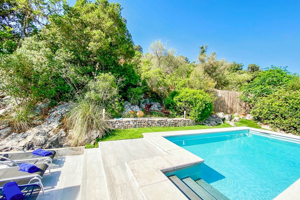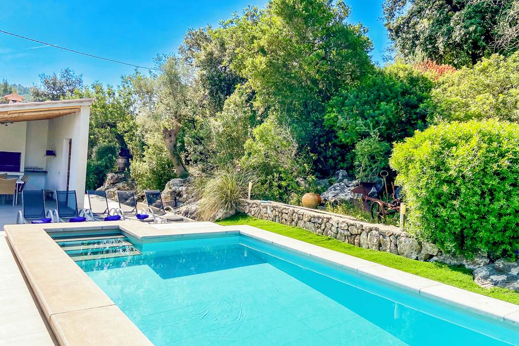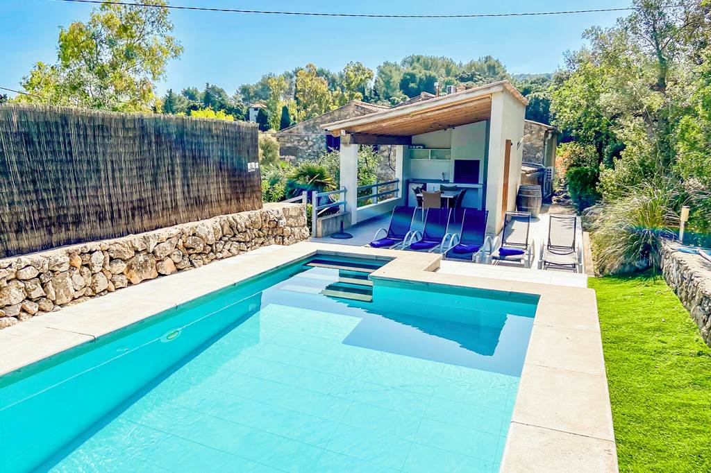 This stunning villa boasts an exceptional location in such close proximity to the town of Pollensa. The interior of the house exudes a warm and inviting atmosphere, spread across two floors. Outside, steps lead down to the swimming pool, which is surrounded by sun loungers, providing an ideal setting for swimming and basking in the sun. Just in front of the pool, there is a covered barbecue area with a sink, a small fridge for drinks, a dining table, and chairs. This area is perfect for enjoying summer meals with loved ones. Due to the house's location on the slope of a small hill, there is no garden. However, the pool area is adorned with beautiful shrubs and plants that are meticulously maintained. ... More