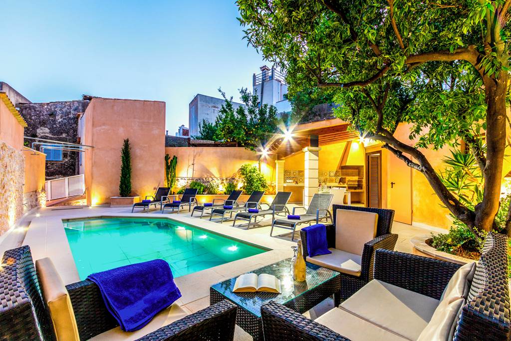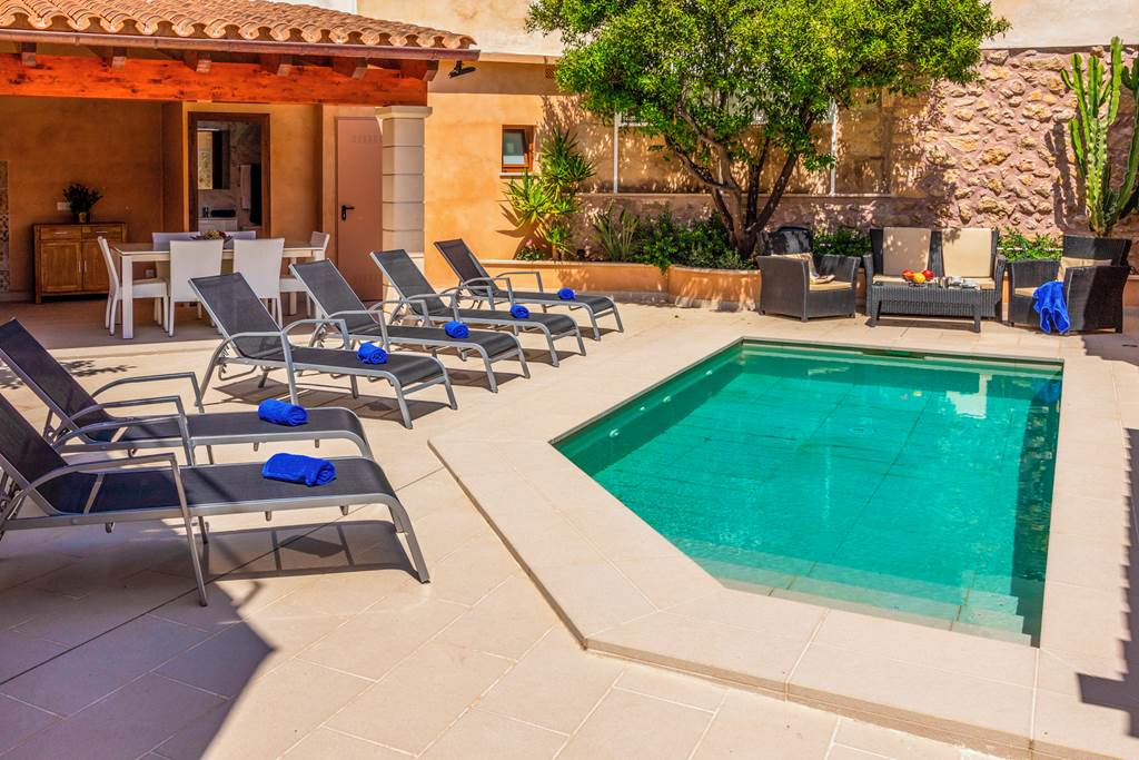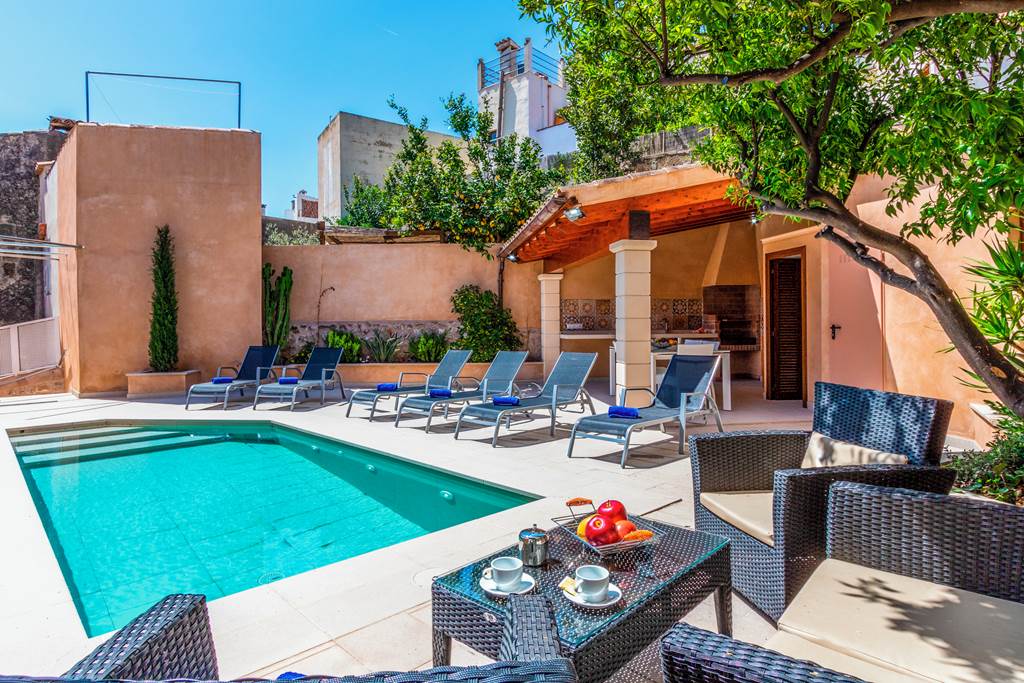 Tucked away within the back streets of Pollensa Old Town, this charming townhouse is a must see! Located just a stone's throw away from the townhouse once owned by renowned painter Dionis Bennassar, this charming ancient town is full of history, cobbled streets and medieval churches. Lined with cypress trees, the famous Calvario Steps, a staggering 365 of them lead off the market square and to the tiny Calvario Chapel at the top. The climb is well worth the effort! If you don't feel like trekking up these ancient steps then stick to the market square, filled with traditional restaurants serving delicious dishes and tasty tapas. The best part? You're only a two-minute walk away. If you fancy a day by the pool then Villa Horta 55 can be your host. The spacious terrace has lots to offer, with a refreshing pool, reclining sun loungers and a comfy seating area. A covered alfresco dining area is the ideal spot for some alfresco cooking. With a twin basin, brick-built BBQ and a large worktop, this area is superb for cooking up a storm! If you don't feel like soaking up the rays by the pool, then head to the roof terrace which boasts impressive views of the surrounding Tramuntana Mountains that dominate North Mallorca. The main house is split over two levels, with a kitchen, lounge and dining area all on the ground floor. The kitchen is modern with a traditional twist, the white cupboard doors and painted wooden beams pair perfectly with the stone wall. The lounge retains its beautiful character with dark wooden beams and a comfy beige sofa. A beautifully crafted wrought iron staircase leads you to the four bedrooms on the first floor. Two king-sized bedrooms have private ensuites, whilst the remaining two bedrooms have twin beds, sharing a separate shower room. All bedrooms come with complimentary air conditioning. ... More