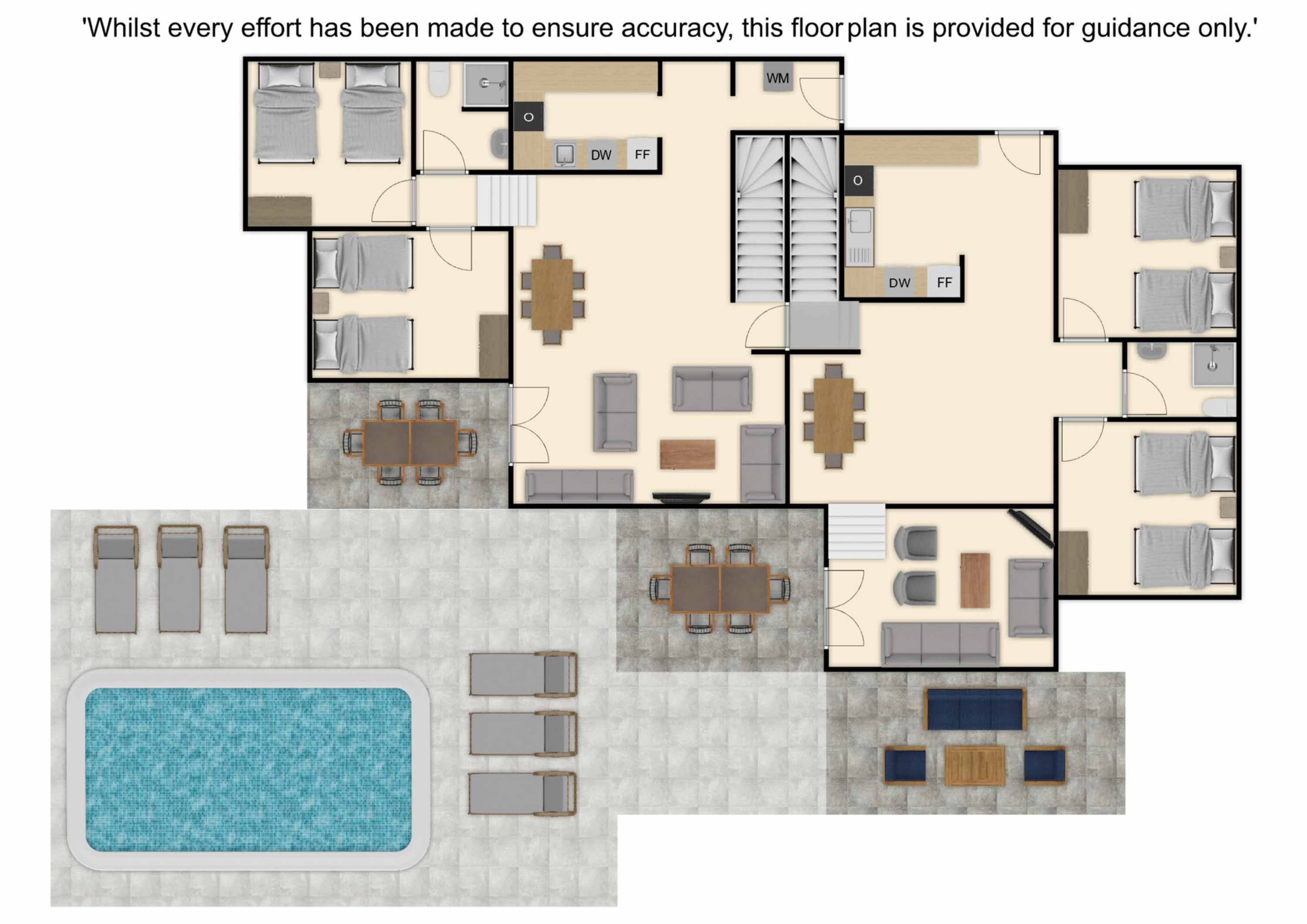 Villa Bini Aida is nestled a short walk from the renowned white wash, picturesque village of Binibeca Vell, the old-style fisherman's village. This large villa is a great choice for a relaxing break in the Menorcan sun. Six bedrooms, four bathrooms, two kitchens and two living areas make up this beautiful villa, making it a good option for large families or combined families. Outside you will find a spacious pool and sun loungers, suited for sun seekers and a covered area for anyone wanting to relax in shade with a good book. As the sun sets you can enjoy an evening meal alfresco style with local produced cooked up on the brick-built BBQ. Be sure to make use of your car hire and venture around this picturesque island and discover the many gems that Menorca holds. ... More