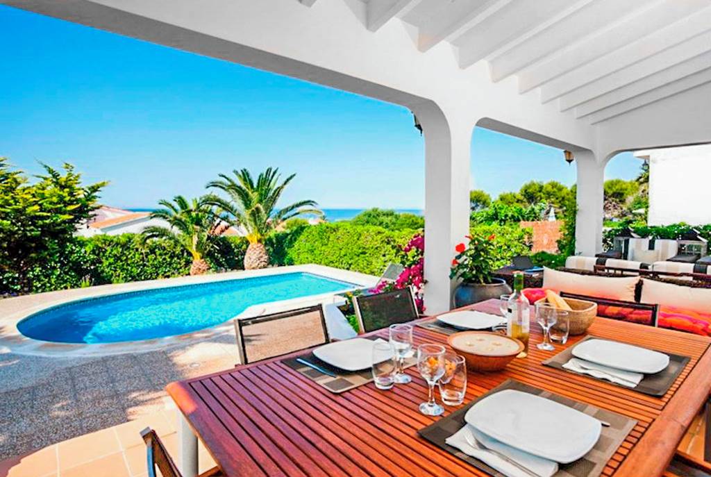 In an enviable location, less than 10 minutes’ walk from the idyllic whitewashed fishing village of Binibeca Vell, this charming Menorcan villa has everything you need for a peaceful holiday. The villa has been beautifully decorated with neutral tones creating a calming vibe throughout the property. Three air conditioned bedrooms ensure maximum comfort during the hot summer nights, one of which has ensuite facilities and a separate shower room is provided for the others to share. The large covered terrace houses high quality exterior dining facilities and a comfortable seating area which overlooks the beautiful private pool and the glistening blue of the Mediterranean sea in the distance. ... More
