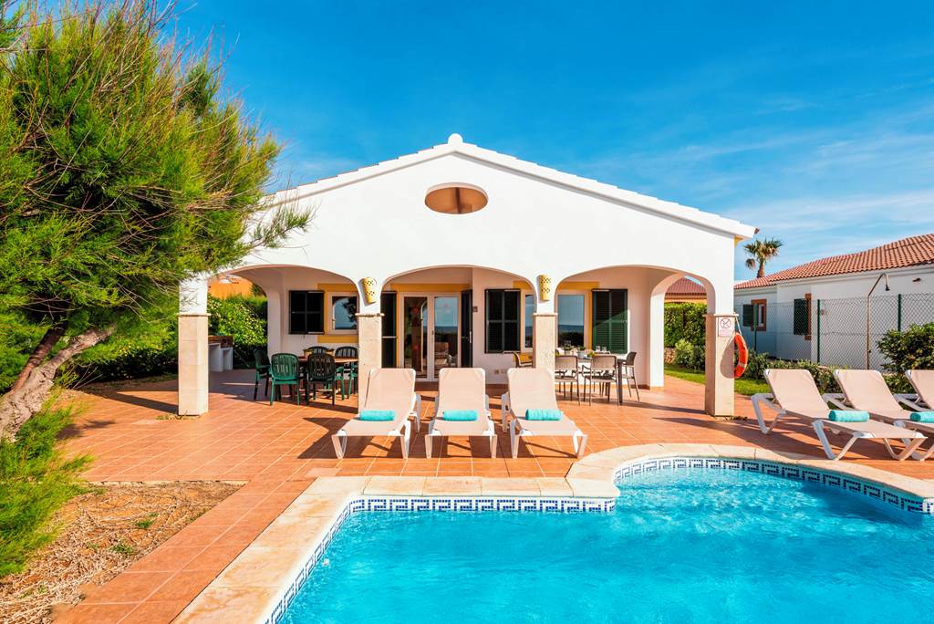 Villa Aldebaran is a stunning property located in the beautiful resort of Cala'n Bosch, nestled on a hillside overlooking with spectacular sea views. This villa boasts three spacious bedrooms, air-conditioning, outdoor swimming pool and a large outdoor terrace, perfect for entertaining and enjoying the sunny Mediterranean climate. Villa Aldebaran is the ideal retreat for a memorable vacation in Menorca. High ceilings give the communal rooms and three bedrooms a feeling of space, but the pretty furnishings make things feel nice and cosy. Step into the kitchen and there’s everything there to whip up a feast. Out among the leafy gardens, there’s plenty of room in the decorative, tiled pool to do a few lengths, and more than enough space at the side to sit back on a sun lounger after. And the covered terrace and barbecue equipment just calls for al fresco eating. Beach days and go-slow vibes are on the cards at nearby Cala’n Bosch – make the most of your visit with a marina-side meal. ... More