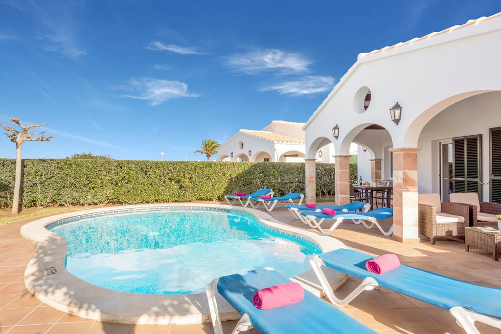 With three good-sized bedrooms and two bathrooms, Villa Safron is a family-friendly villa bursting with character. Only a 15-minute walk from Cala en Bosch, there is plenty to do nearby. Spread across one level, Villa Fucsia has a spacious lounge and can sleep up to six people. Furnished in a modern style with hints of Spanish tradition, shaded and open terrace sections provide choice when lazing outdoors. Kick back in complete privacy with a hedged garden home to comfy terrace furniture and plenty of sunbeds. If you fancy a change of scenery for an afternoon, there are many restaurants, shops and bars in the pretty resort of Cala en Bosch close by. Or why not visit the former Menorcan capital Ciutadella with its impressive cathedral, only a short bus ride away? ... More