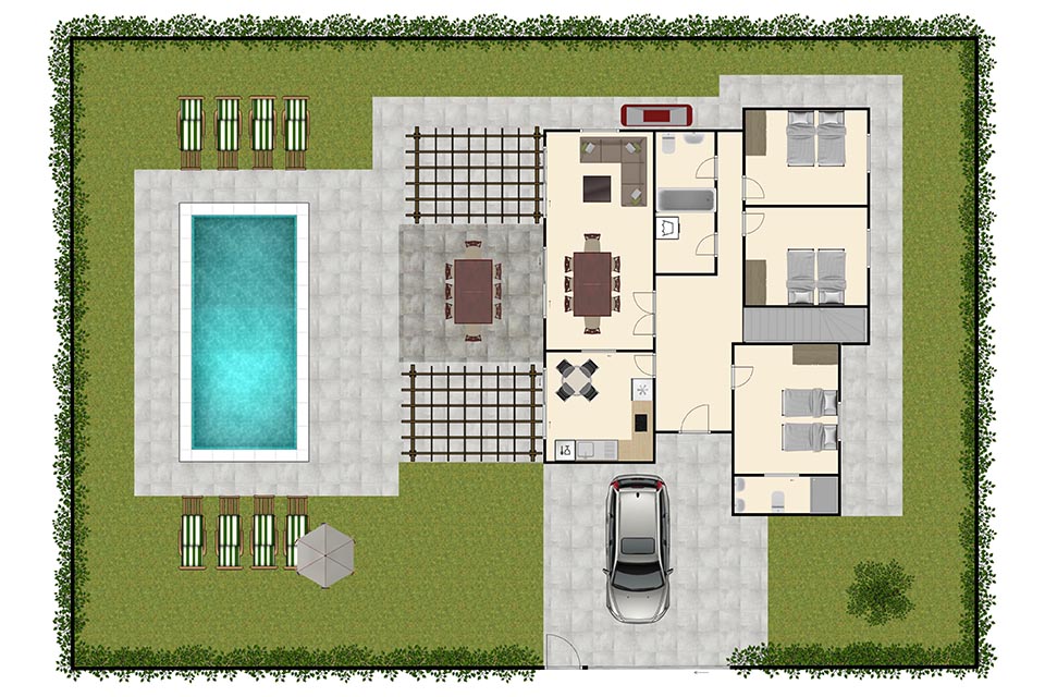 Spread across two floors with irresistible décor, Villa Blue Dream is a bright villa full of character and charm. All four bedrooms are air conditioned with an en suite shower room in the first floor master bedroom. Base yourself within gentle walking distance of the popular resort of Cala en Forcat when staying modern and spacious villa that welcomes up to eight people. Outside, you'll discover a large private pool protected by tall hedges for a private feel. A garden, lawn and both shaded and open terrace spaces provide lots of choice when eating or chilling out in the Spanish heat. Nearby Cala en Forcat is well worth exploring, with an aqua centre and three idyllic coves providing plenty of photo opportunities to remember your holiday by. ... More