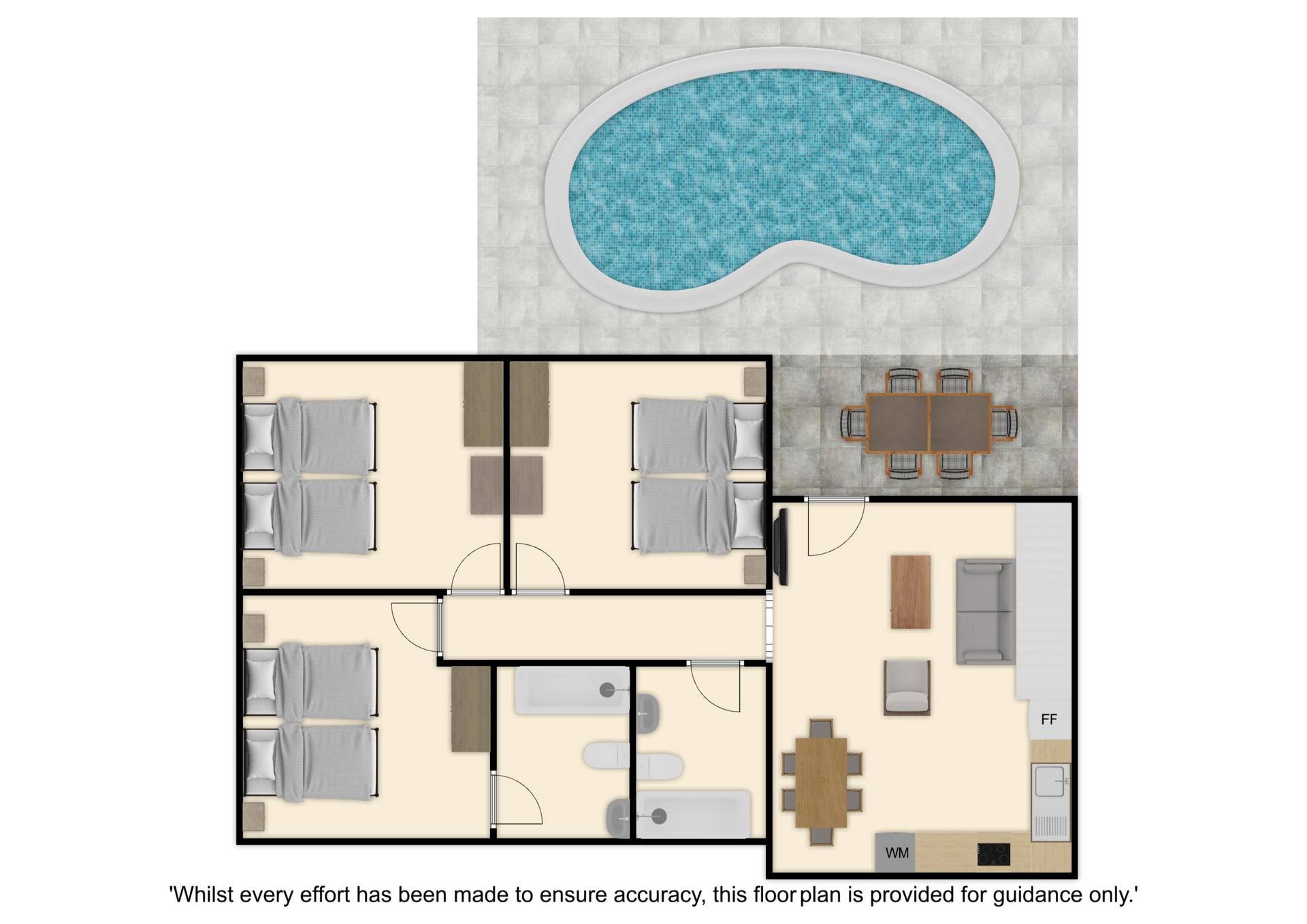 The floor plan of the villa is shown in the diagram above.
