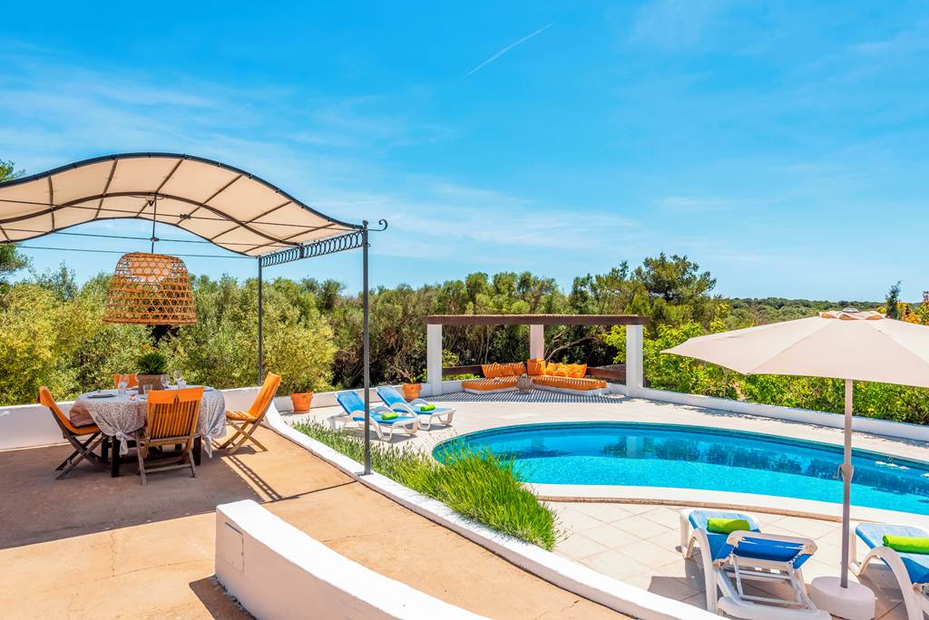 Villa Las Rocas is most privately situated amongst open, gorgeous countryside on the perimeter of the exclusive San Tomeu urbanisation, a fantastic place to spend your perfect holiday in Menorca. This lovely private villa boasts an expansive garden dressed with lush green grass and surrounded by delightful shrubbery; it is in fact the largest lawned garden of all our villas in Menorca with private pools! If its peace and privacy with an air of exclusivity that you are looking for, this is the answer. This bungalow style villa in Menorca is of Ibizan architecture. Arches, bougainvillea filled patios and whitewashed walls are all wonderfully combined to create a property that is worthy of being described as truly fantastic. ... More