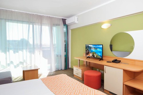 Calling all beach lovers! Aktinia Hotel is just metres away from the beautiful sandy shores to the south of Sunny Beach. There are a number of fabulous beach bars nearby, or back on-site there’s an outdoor pool and bar to enjoy while the kids are entertained at the children’s club. Take a short taxi ride to explore Nessebar Old Town, a UNESCO World Heritage site just 2km away. Or head in the opposite direction and you’ll find yourself in the midst of the famous nightlife in Sunny Beach. There’s so much to do, and you’re in luck—Aktinia Hotel has comfortable rooms and apartments waiting to welcome you after a fun-filled day. ... More