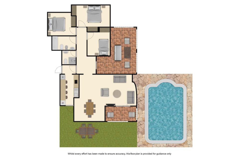 Please note: the ceiling fan in the lounge has been removed since the photos of Villa La Luna were taken.