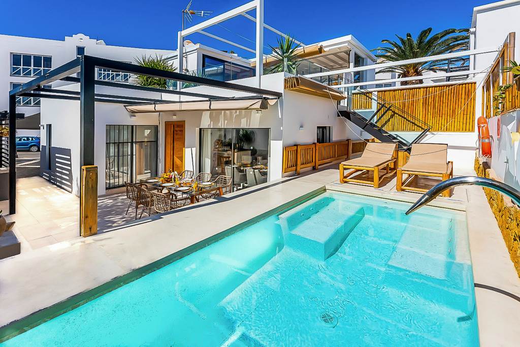 Villa Sunrise Beach is not to be missed! This unique villa is right in the heart of Corralejo, with its modern bohemian-style interiors, children's play area, and in pool seating area. Relax in ultimate style whilst enjoying your modern surroundings. Just outside of the villa walls, you'll find the heart and soul of Corralejo, with international cuisines, bars, shops, and sandy beaches within walking distance. Due to its fantastic location, you won't need to hire a car, however, this villa comes with off-road parking for up to 2 small cars, shaded by a sail which can alternatively be used as an additional sunbathing area. Enjoy a glass of bubbly in the pool as you take a seat and relax in the sunken seating area, or whip up a meal on the brick-built barbecue. ... More