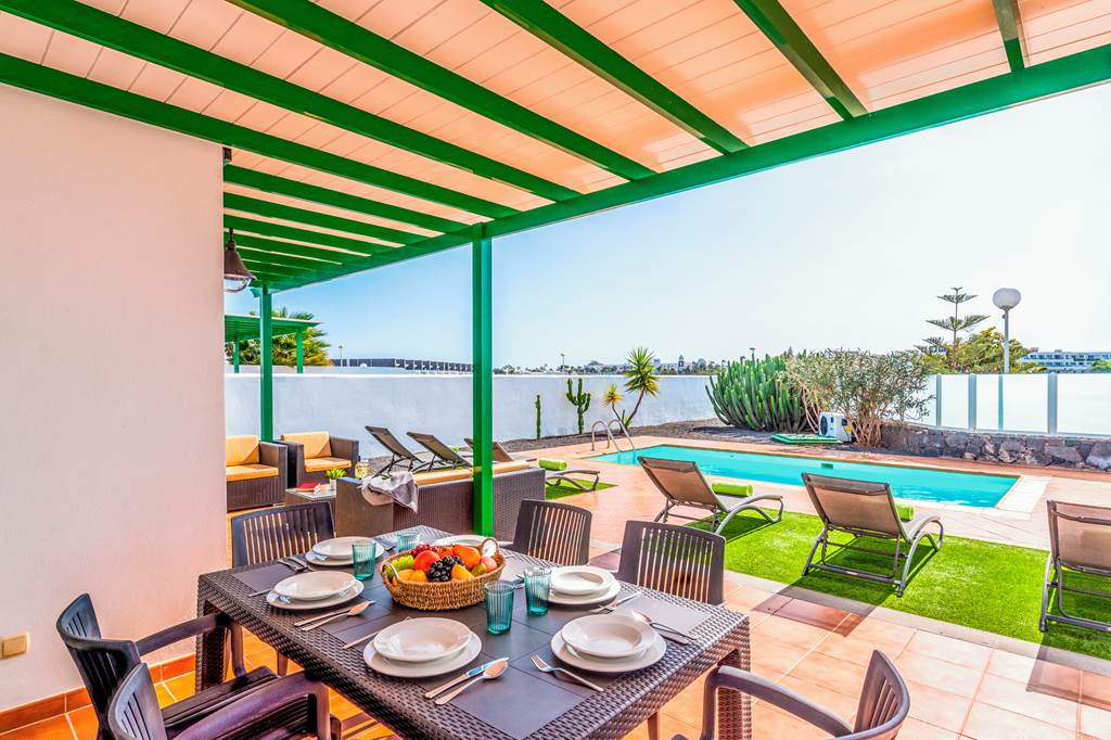 Charming Villa Bonaci is the ideal Canaries getaway, set within neighbouring villas and less than a 15-minute walk to the centre of the resort and the nearby sandy beaches of Playa Blanca. Spend the day exploring Playa Blancas's back streets, filled with boutique shops, busy bars and international restaurants, making for the ideal day out with the family. An impressive seafront is an ideal location for a spot of lunch under the glistening sunshine, as boats bob along the horizon and you try some delicious traditional dishes. If a day by the pool is more your thing, then look no further than Villa Bonaci. Designed to help you relax in style, this terracotta terrace boasts a refreshing swimming pool, lined with reclining sun loungers, rattan furniture and alfresco dining. Enjoy an evening under the stars and make use of the brick-built barbeque as you cook up a storm for friends and family. French-style patio doors lead from the terrace into the lounge area, bright and airy with cosy sofas and even a smart television. The quaint kitchen is ideal for cooking, as it comes fully equipped with all the latest appliances and a small dining table. A twin bedroom, shower room and utility area complete the ground floor. Upstairs we find the remaining two bedrooms, one twin and one master double. Both share a separate spacious family bathroom. ... More