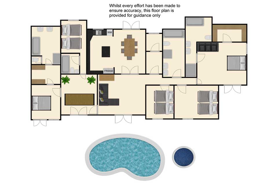 Please note: This property contains a built in seating area at the far end of the pool deck. Please ensure children remain supervised at all times.