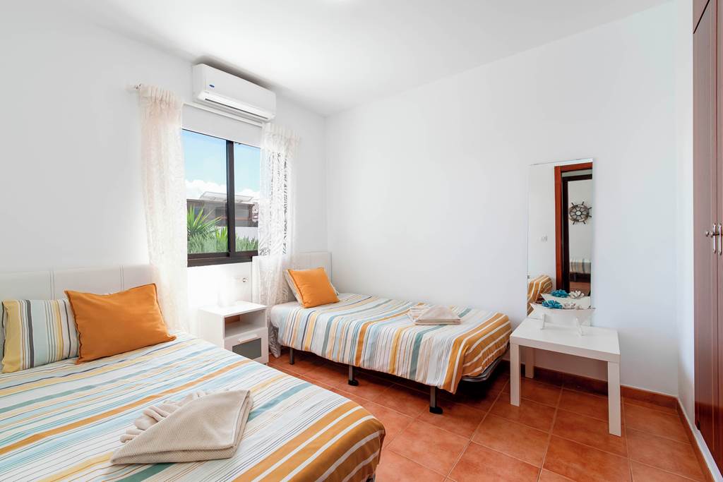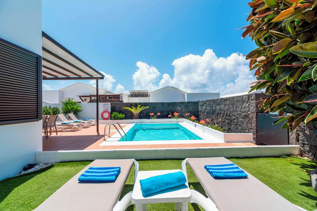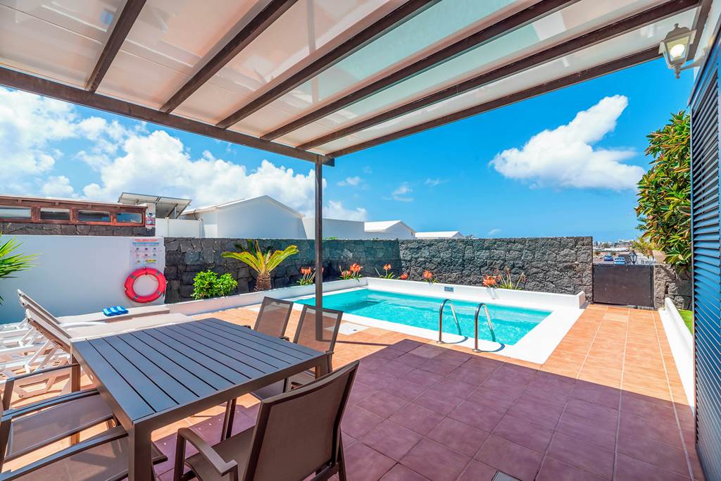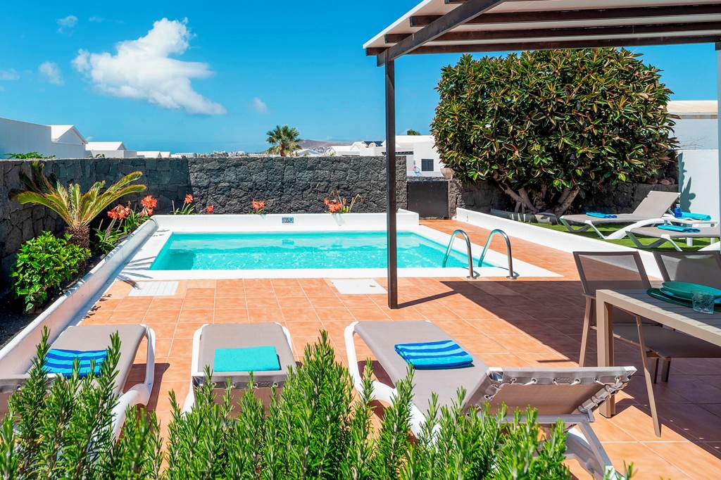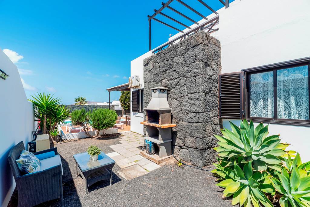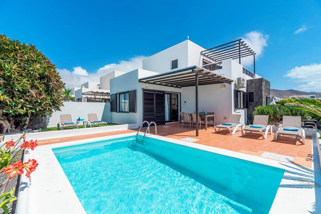 Villa Cisne is an attractive Canarian style villa that catches the eye as you enter the grounds, with its pretty pergola and abundance of natural plants, it makes this delightful dwelling stand out from the rest. As you enter the property, you are greeted by a welcoming living/dining room with a corner sofa and flat screen TV, offering international channels. The villa has a separate kitchen with everything you need to rustle up some local delicacies. It has three bedrooms; one single, one twin (both on the ground floor) and as you make your way upstairs, you will find the master bedroom leading out onto a lovely, spacious terrace with beautiful sea views and modern seating – the perfect place to watch the sun go down. This bedroom also features a king size bed and an ensuite bathroom. Once settled into your place for the next week or two, make your way outside where you can lounge around in the garden, appreciating the peace and tranquility that this villa has to offer or just soaking up the Spanish sun. Cool off with a dip in the inviting pool and why not finish off the day dining al fresco and taking advantage of the villas brick built barbecue? If you fancy heading out whilst on your holiday, you have the luxury of either staying local and walking to Rubicon Marina where you will find a mini market, local shops and restaurants, or, if you fancy venturing further afield, you have the beautiful Faro Park just a short drive away where you can sample a local delicious cocktail. ... More