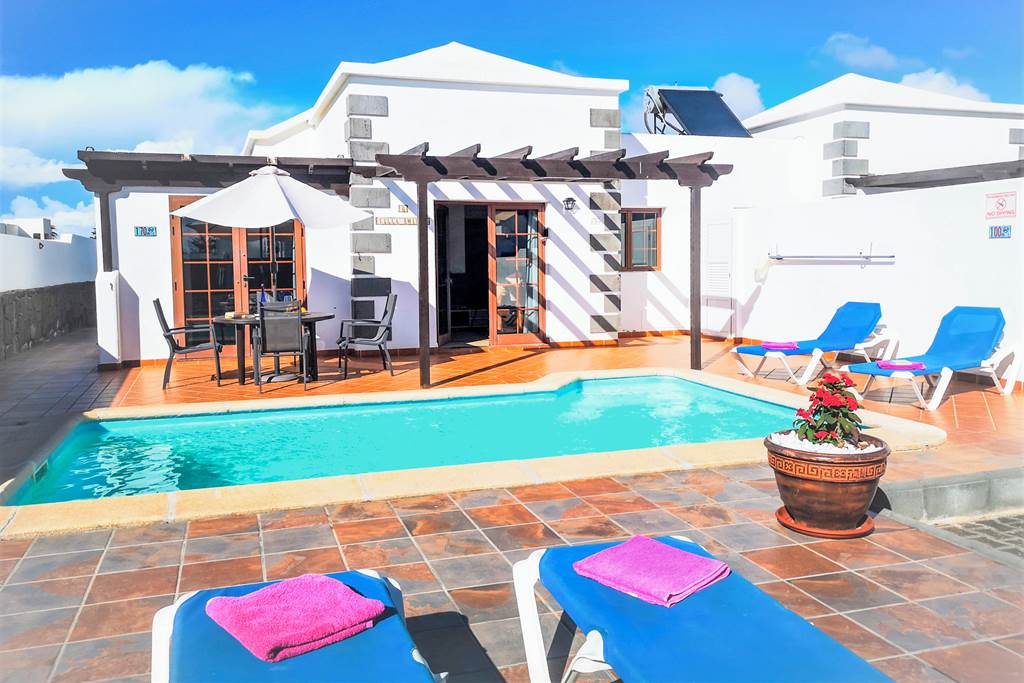 For a taste of Lanzarote, Villa Emilia is the perfect base for a small family or couple craving a cosy getaway in this sun-drenched isle. Nestled in a picturesque neighbourhood of Parque del Rey on the island’s southern tip, this charming villa is an idyllic stay away from the hustle and bustle. For a slice of the action, the bustling resort centre of Playa Blanca is just a fifteen-minute walk away, where you’ll be spoilt for choice with amenities. Enrich your taste buds at a first-class restaurant, hunt for souvenirs at boutiques or taste traditional drinks at a bar. Villa Emilia is all about its intimate outdoors, with a secluded terracotta-tiled terrace all to yourself. Boasting 300 sunny days a year across the Canary Islands, unwind on the sun loungers and soak up the endless sunshine. For the ultimate lazy afternoon, make a splash in the sparkling swimming pool to escape the heat. Follow the set of double French doors to snug interiors – with contemporary décor, wooden ceilings and inviting colour tones that fill the villa with a feeling of warmth. The two double bedrooms, spacious lounge, dining area, and modern kitchen area spread across one floor, forming an intimate villa escape. As the evening seeps in, we can’t think of a better place to watch the sunset than with dinner and drinks in the alfresco dining area. ... More