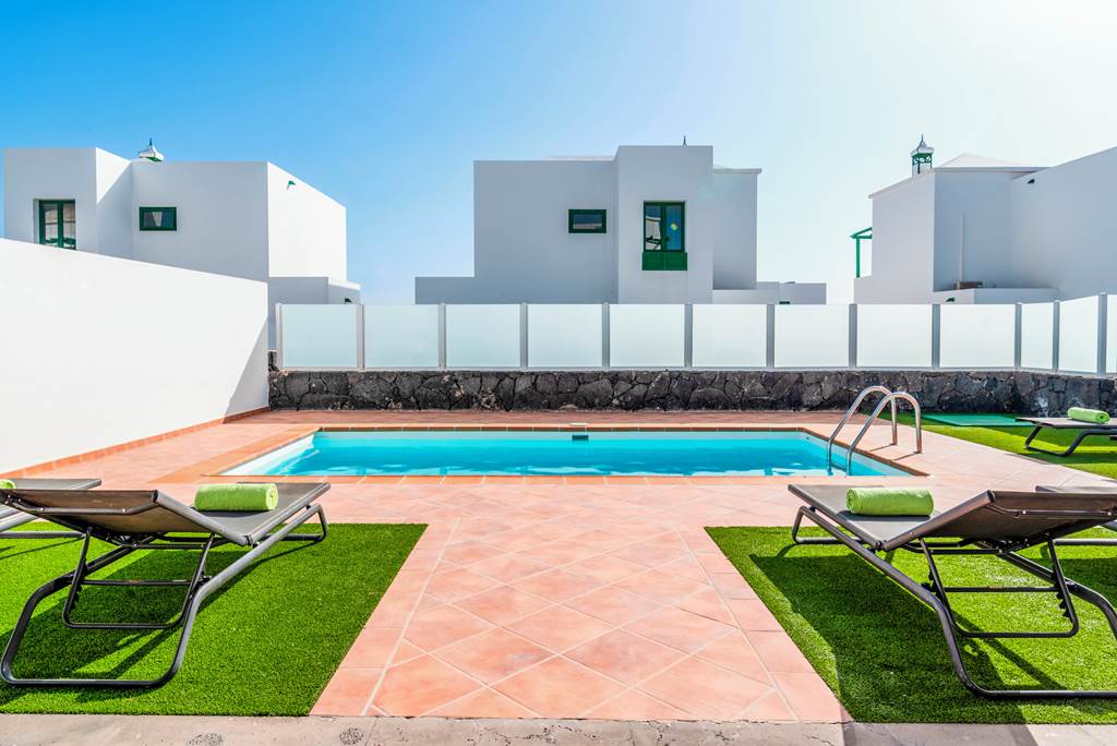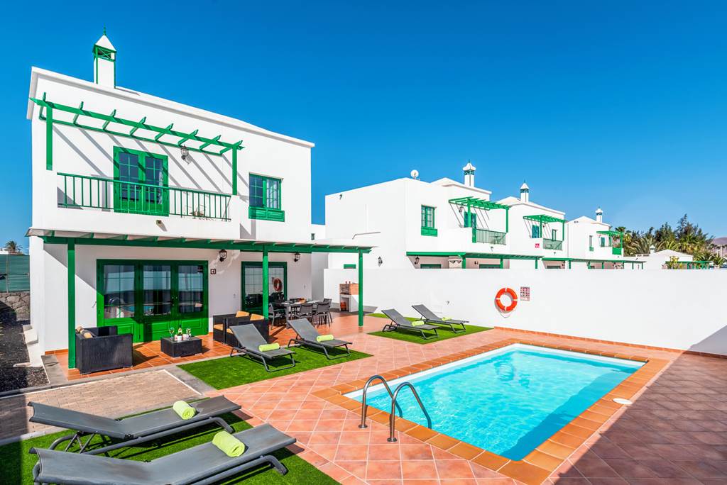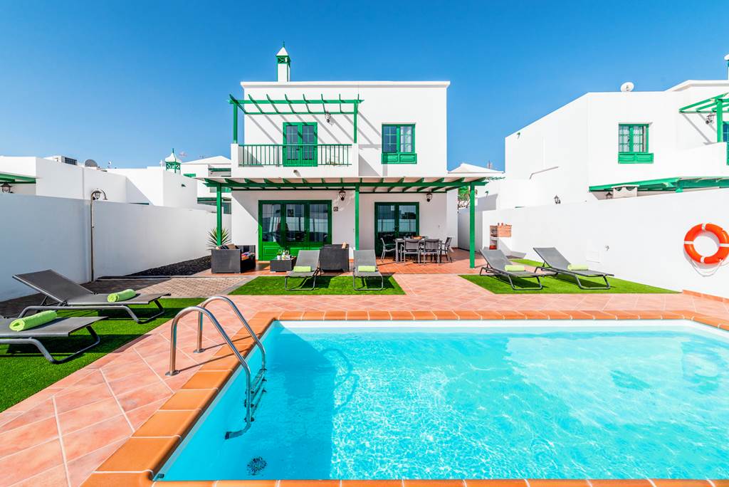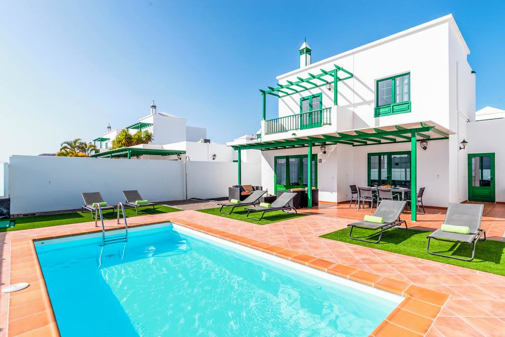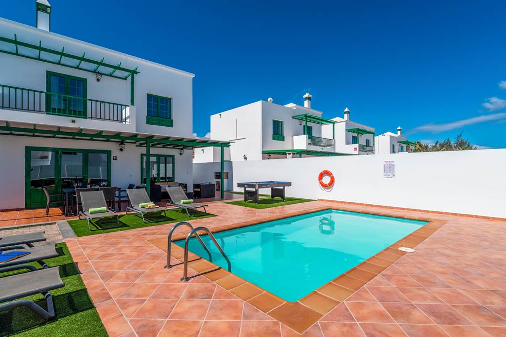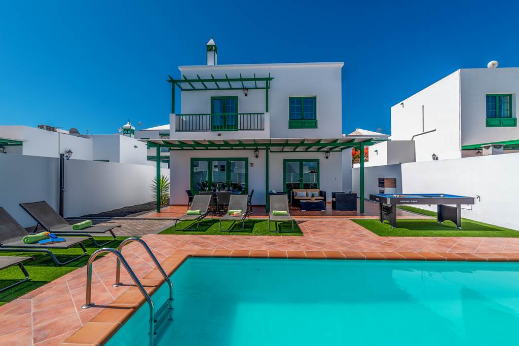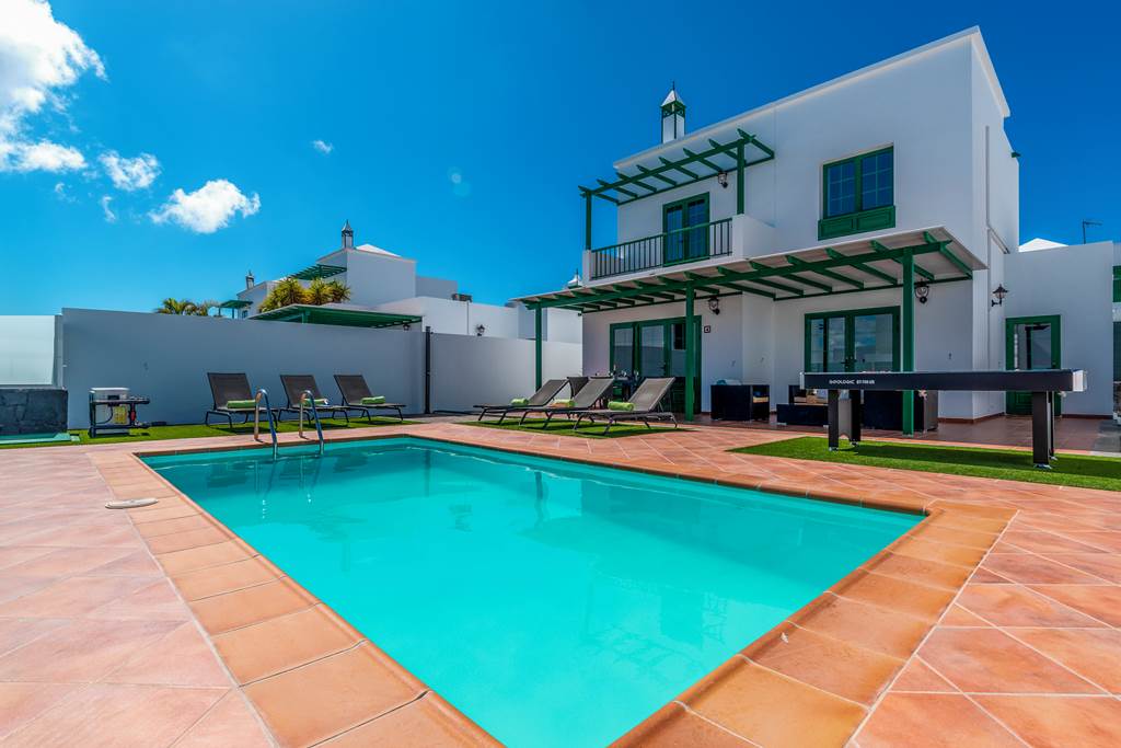 Stunning Villa Guelde is conveniently located just a short 15-minute walk into the very heart of Playa Blanca. With an array of activities for all the family, from an impressive shopping scene to a day at one of the many popular beaches, there's plenty to do on your holiday in the sun. The seafront promenade is where it's all happening, where mouthwatering restaurants serving up freshly caught seafood, traditional tapas, Asian culinary delights, and Italian stone-baked pizzas. You're also just a short walk from the nearest supermarket, where you can bag yourself some tasty treats ready for a feast alfresco style back at Villa Guelde. With three bedrooms, this classic property is ideal for smaller groups and families. Villa Guelde is designed beautifully, with a painted white facade, bright green shutters and a red-tiled terrace, classic in style to similar nearby properties. We love it! Sat on a small complex, Villa Guelde has a spacious terrace surrounded by a tall white-washed wall and dotted with baby palm trees, giving you that Mediterranean vibe. As an added bonus, the refreshing pool is also heated from November to April, meaning you can enjoy the pool all year round. Pull up a sunlounger and relax in style as you top up your tan. Patio doors lead from the terrace to the indoors, where you'll find a living room and kitchen on the ground floor. There's also a twin bedroom on this floor, with twin beds and doors to the stunning terrace and covered dining area. Upstairs, we find the remaining two bedrooms, one twin room and a double with access to a balcony terrace. ... More
