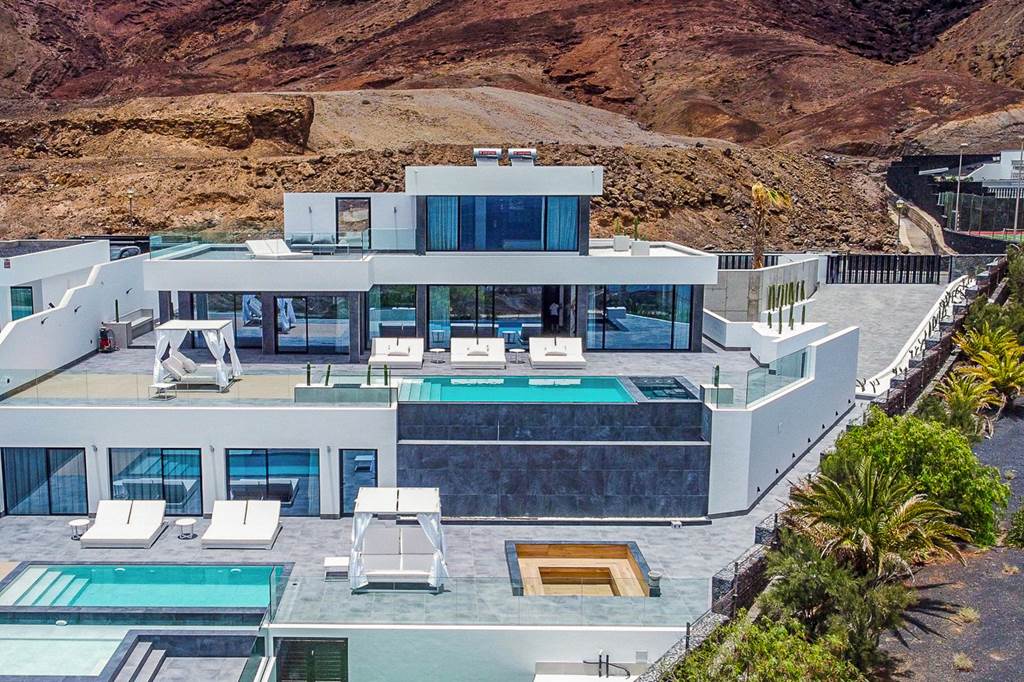 Designed with expansive balconies and terraces, Villa Infinity certainly impresses when it comes to outdoor living. Sink into the bubbling hot tub or swim a few laps in the expansive, sparkling pool. Lined with plush double sun loungers and day beds, perfectly positioned by the pool for transitioning from swimming to sunbathing. Head to the lower terrace to practise your swing on the little putting greens. Alfresco dining doesn’t get any better than this, where you can enjoy a glass of wine and eat dinner while watching the sun set over the horizon. Even when you’re inside, it’s impossible to ignore the incredible views on offer; with the interiors framed by floor-to-ceiling windows and doors that overlook the landscape. Built as an open-plan concept, the two lounge areas are a breath of fresh air, with trendy sofas and arm chairs perfectly positioned by the coastal vistas. Gather around for the ultimate movie night experience in the cinema room, filled with leather arm chairs and decorated with movie posters – just don’t forget the popcorn. Let off some steam in the indoor gym with a set of weight machines and treadmills, or opt for a more relaxing method in the indoor sauna. Each of the bedrooms are light and airy and framed by the inspiring scenery, sleeping up to eighteen guests in total. Bedroom 5 has a hallway leading from it with another room featuring twin beds. Please note that there is no door dividing these rooms. There is also and internal lift giving access to all floors. ... More