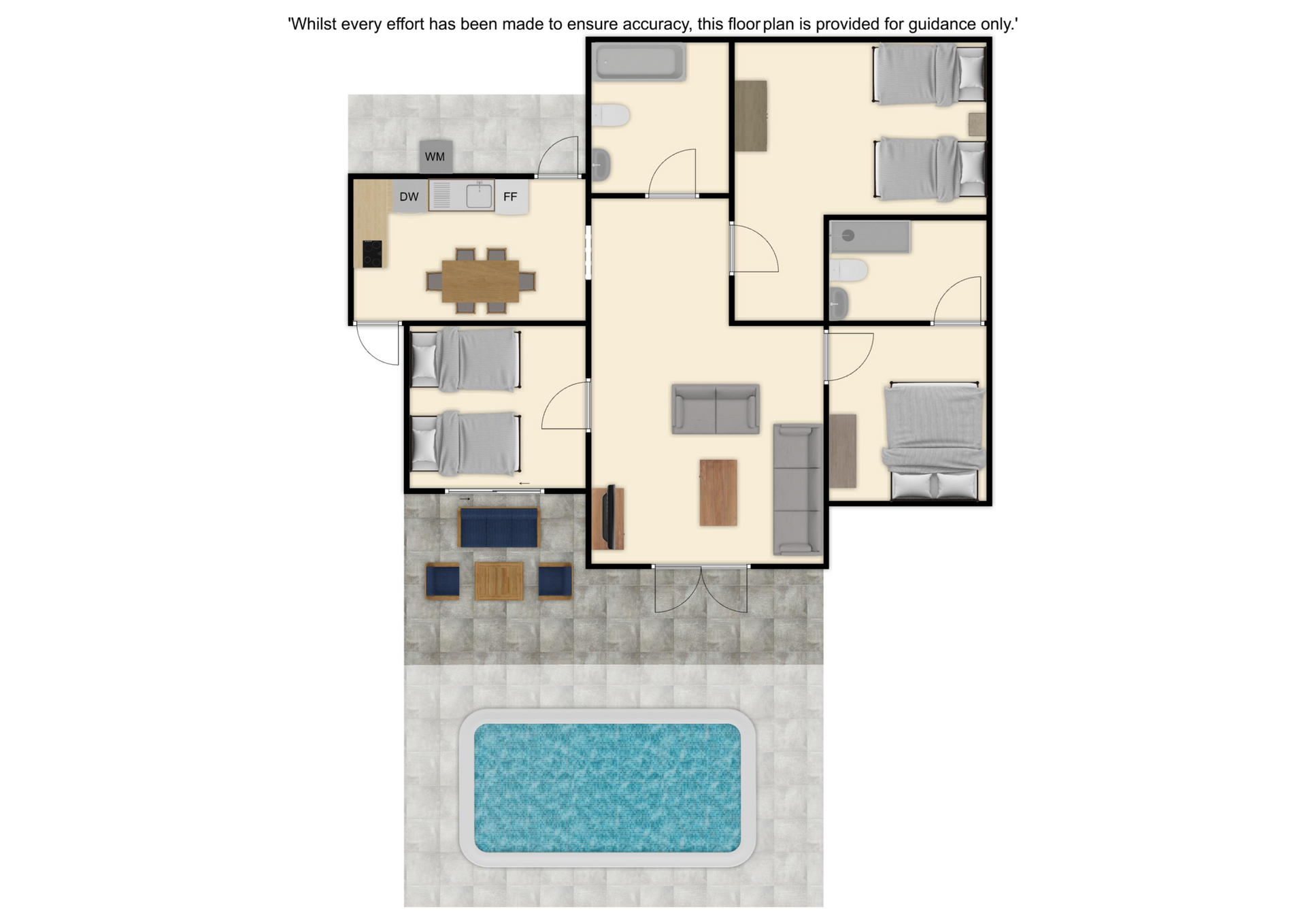 Charming Villa Sama is the ideal getaway. Located less than a 15-minute walk from the bustling resort of Playa Blanca, this stunning villa is a must-see. Due to its convenient location, you have easy access to nearby supermarkets, bars, restaurants and the sandy beaches of Playa Blanca. As an added bonus, as well as being car optional, Villa Sama comes with complimentary pool towels. Grab a shaded spot with a good book and a homemade cocktail. The pool is ideal for splashing around with the kiddies during the midday sun. Inside, this ground-floor property boasts three air-conditioned bedrooms, making Villa Sama ideal for smaller groups. Patio doors lead from the covered terrace to the living room. Bright and airy, this sun-filled room comes complete with cosy sofas and even a smart television. The fully equipped kitchen is modern in style, with all the latest appliances, making your cooking experience as simple as possible. Three bedrooms, two twins, and one master double share two washrooms, one with a shower and one with a bath/shower combo. ... More