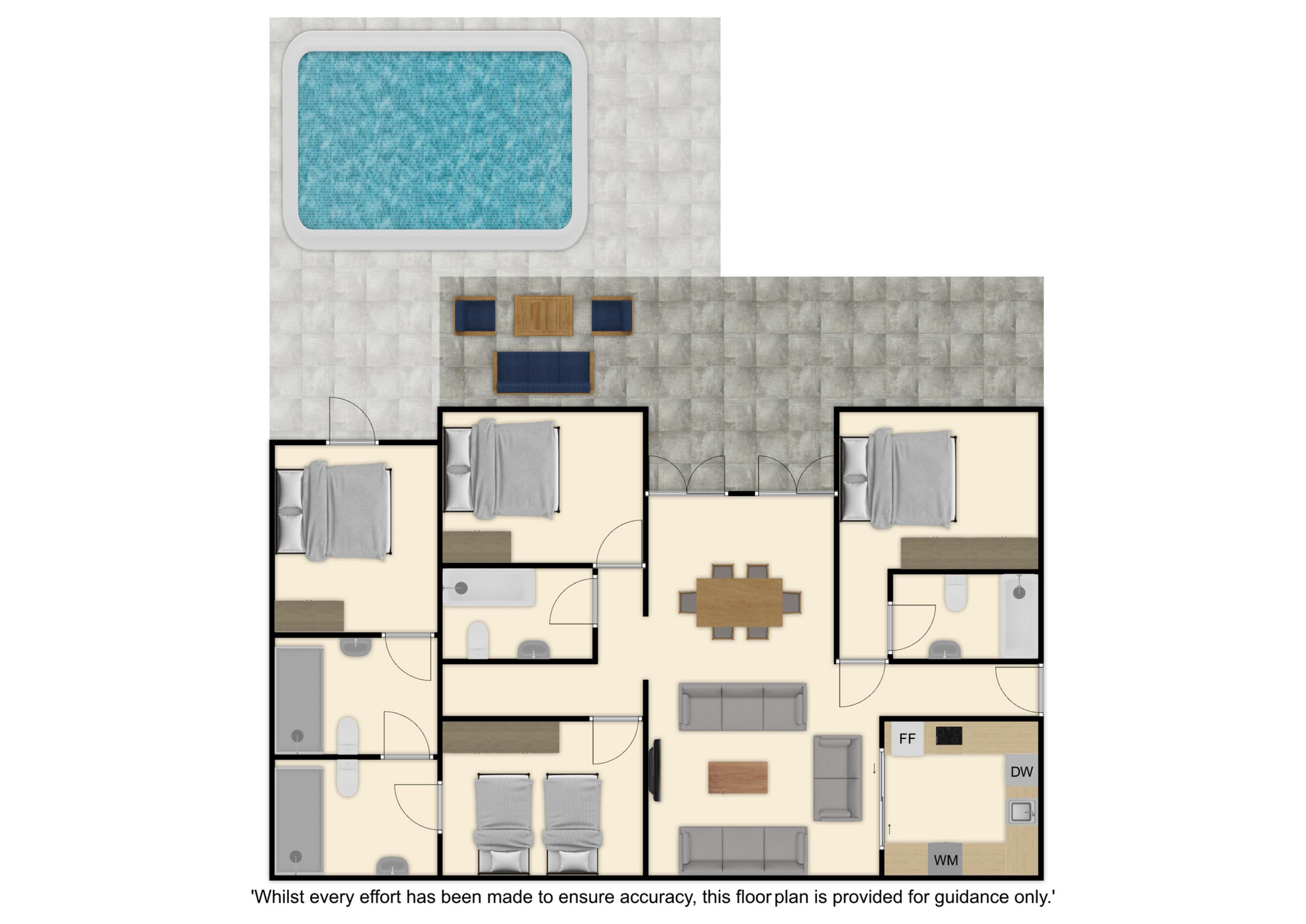 • Ensuites 3 & 4 share an interconnecting door. This can be locked from both sides to provide privacy and to separate the two ensuites. Or, this can be unlocked and open for the convenience of families.