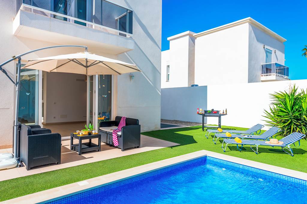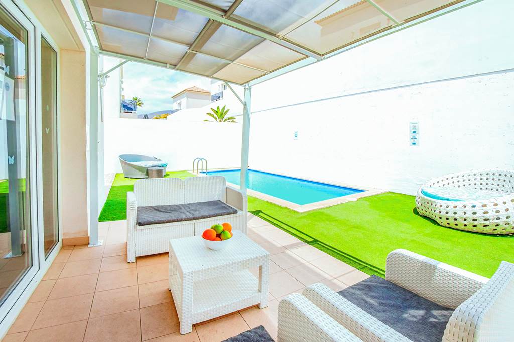 Now here’s a Tenerife holiday villa that caters for all! Four modern bedrooms provide plenty of space at Villa Campanula, which also has a walled garden for extra privacy. Soak in the private pool or enjoy a relaxed afternoon on a sunlounger. As evening falls, dine al fresco under the shaded terrace. The portable barbecue is perfect for family meals, while Wi-Fi and a TV/DVD player will keep everyone entertained. This Tenerife villa is well placed for an island adventure. Jump in your hire car and you’ll be at the beach within minutes – alternatively, spend an evening exploring Costa Adeje. ... More