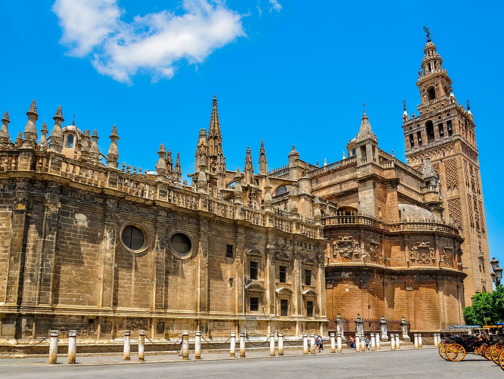 Key attractions include the magnificent Seville Cathedral (and its Giralda bell tower), the stunning Real Alcázar palace, and the picturesque Plaza de España. Other popular spots are the Metropol Parasol (Las Setas), the historic Jewish Quarter (Barrio Santa Cruz), and the Guadalquivir River.