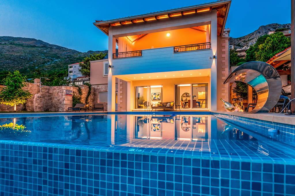 This stunning, villa is set to become one of the most sought-after in Croatia and will be sure to take your breath away. Set in a lush hillside outside the town of Mlini, the phenomenal views speak for themselves. From the moment you arrive, you’ll be taken aback by the mesmerising vistas of the sparkling Adriatic Sea, towering mountains and sprawling Dalmatian countryside. This sublime villa showcases the best that nature has to offer, enclosed by greenery and walls of exposed natural rock for a lovely touch of added security. Take to the incredible outdoor terrace to soak up the panoramas, with plenty of sun-loungers and outdoor seating dotted around. The outdoor infinity pool is something else, the perfect afternoon relief from the warm Croatian sun. For some added relaxation, head to the upper terrace and sink into the bubbling jacuzzi whilst overlooking the beautiful horizon. ... More