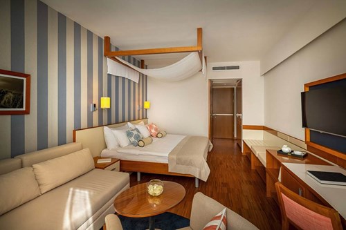 One Free Child Place is available when there are at least 2 passengers paying the full price. There can only be one Free Child Place per room, or per villa, on the booking. With the exception of villa products, multiple Free Child Places can be booked as long as there are at least 2 passengers paying the full price per child place, each Free Child Place is assigned into a different room and there is availability of Free Child Places. Where a party consists of one adult and two children, one child will be charged the full price applicable to their age and the other child will receive the Free Child Place.