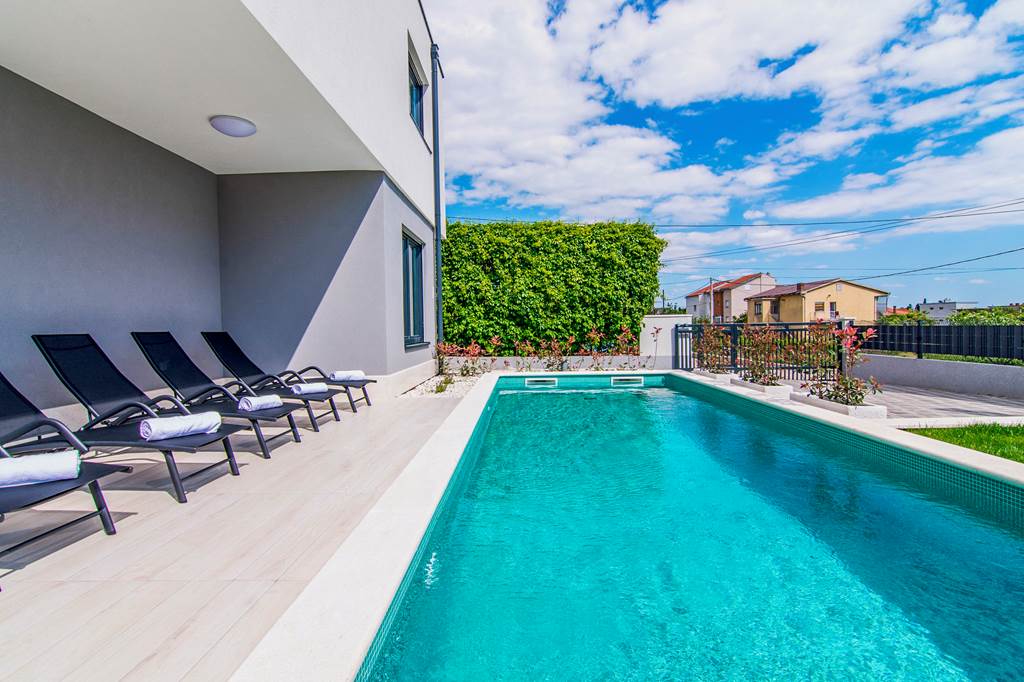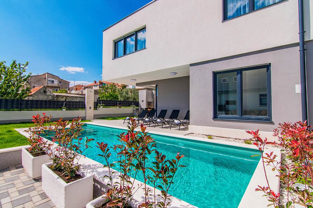 Discover the beauty of Split at Villa Silver Sky II, where modern comfort meets serene relaxation. This delightful villa boasts an array of amenities, ensuring an unforgettable stay for you and your loved ones. Step inside, and you will find a well-appointed kitchen, ready for culinary adventures, equipped with all of the necessary appliances. Unwind in the living room, complete with high ceilings and large sliding doors to the terrace, you will also find the large dining table with room for up to 10 guests. Rest easy in the five stylish bedrooms, each equipped with its own private shower room, offering plenty of space to comfortably accommodate up to 10 guests. Four of the five bedrooms are air-conditioned to ensure pleasant temperatures during warm days, and also include satellite television so that all guests can enjoy their own entertainment. Outside, Villa Silver Sky II is designed for socializing and relaxation. Dive into the 27-square-meter private pool, let the smaller kids play in the charming playground, and fire up the brick built barbecue for delightful meals. The ideal location makes Villa Silver Sky II the perfect base for exploring the beauty of Croatia, set within walking distance of shops, bars, restaurants and even a stunning marina. ... More