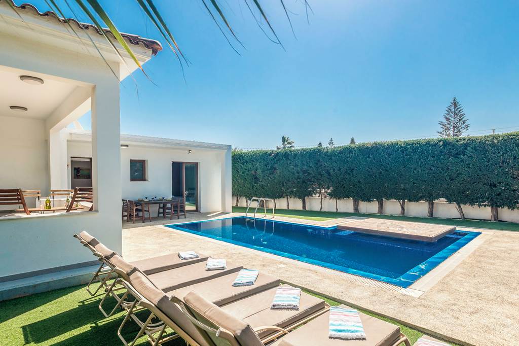 Your very own Ayia Napa paradise is waiting to be discovered, think turquoise glistening waters followed by sun-soaked lounging in the Cypriot heat. Set right on the coast, you can take a short stroll to the beach, breathe in the salty sea air, then enjoy a delicious breakfast in town. Whether you are seeking pure relaxation or a more vibrant escape, Ayia Napa Satin Villa SVI1 is ready to make your holiday unforgettable. ... More
