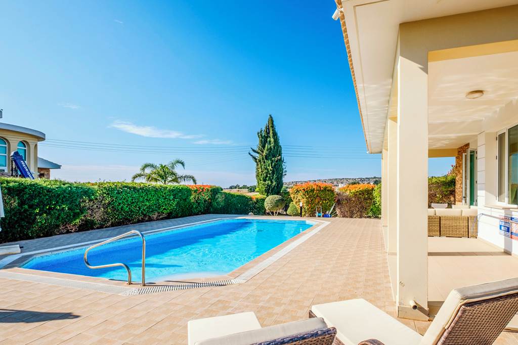 Welcome to Villa Anastel, a charming property located on the outskirts of Protaras, closeby to Cyclops Cave, Konnos Beach, and a selection of restaurants. For fun-filled days out, you can head to nearby Ayia Napa, with its busy bars, amusement parks, seafaring museum, and beachfront. The villa itself sits within a generous plot, surrounded by a tiled terrace, exotic shrubs and evergreen bushes. The pool looks inviting on a hot summers day, and at 11x5m, it's the ideal size for swimming a few lengths before a spot of lunch under the shaded terrace. If you prefer the company of a good book, the soft sofas outside are the ideal place for that ultimate unwind. Inside, the villa is split into three levels, a lower ground floor, a ground floor, and a first floor. You can enter the villa either from the garage level below or the street level which leads you directly into the open-plan living room and kitchen. Fully equipped, this villa comes with all the latest appliances to make your self-catering holiday as easy as possible. With three bedrooms, this villa is ideal for up to six guests. ... More
