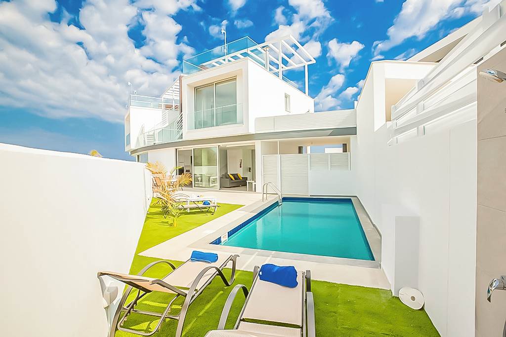 Situated just a short distance from the beach, the Olivine Pearl Villas offer luxury accommodation in a prime location. Rooms are bright, modern and well furnished, plus there’s a stunning pool area to cool off in. Each unit has a fully equipped kitchen and living area and there’s plenty of amenities in the local area just waiting to be explored. The villas provide beautiful garden views and are a perfect choice for families looking for a relaxing break away in Cyprus. ... More