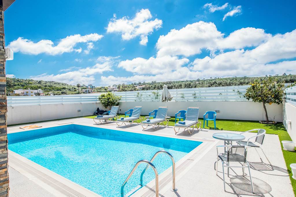 Villa Protaras Anemoni AN8 is a short walk from sprawling sandy shores while just a short drive to the popular Ayia Napa resort. Offering both laid-back relaxation and vibrant nightlife, this property boasts a central location in Protaras, Cyprus, making it an excellent place to stay. With four bedrooms, this villa can accommodate up to eight guests, ideal for getaways with friends, couple retreats, and family holidays in the sun. Additionally, two bathrooms, a living room, a dining area, and a well-appointed kitchen are spread out across two storeys. Inside, this property is decorated to a high standard and is equipped with a variety of home comforts including a dishwasher, satellite TV, Wi-Fi, and air conditioning. Through the wide patio doors, you will discover a spacious garden with private swimming pool access. The ideal place to make the most of year-round sunshine, here you will find a shaded seating area, cushioned sun loungers, patio furniture and barbeque facilities. For panoramic views over the rugged island landscape, head to the impressive roof terrace. ... More