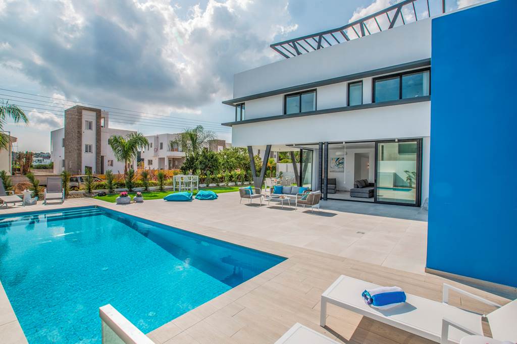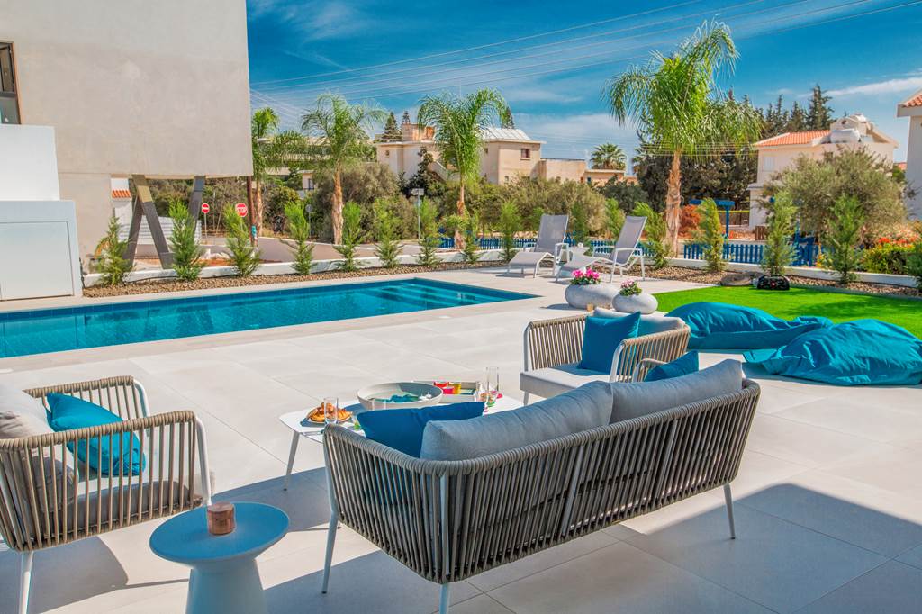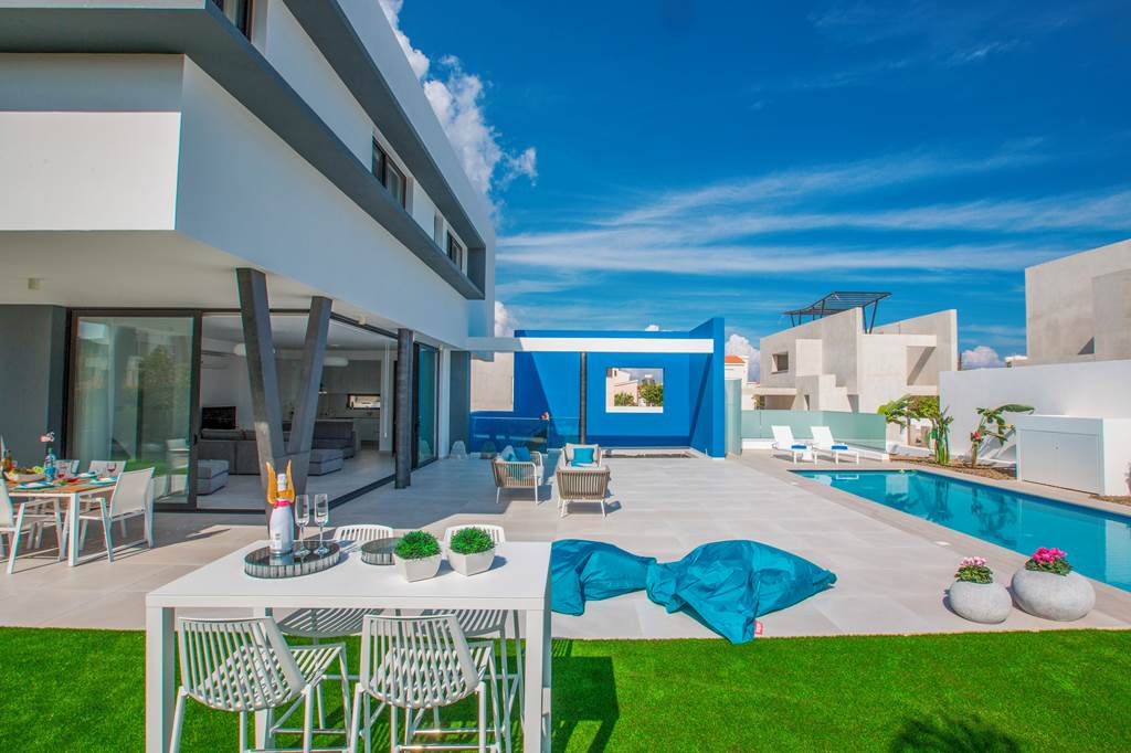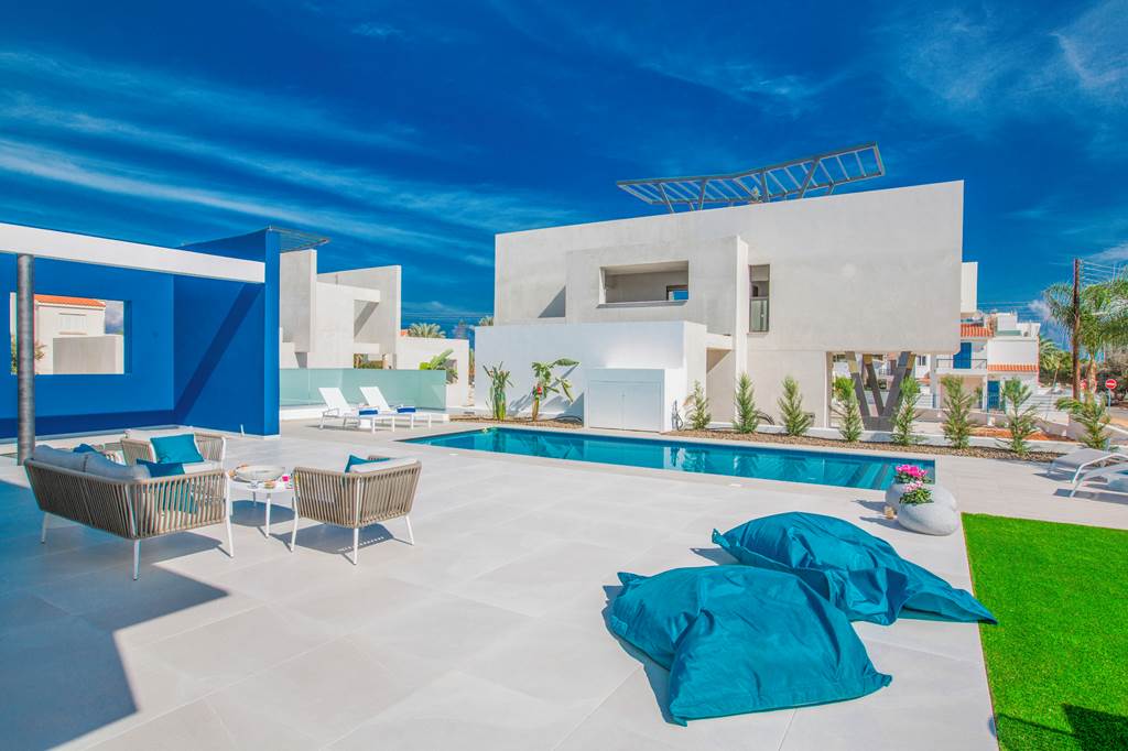 Stunning Protaras Holiday Villa CR3 is waiting to host your sunny Cypriot getaway. Located in the very heart of Protaras, this car-optional villa has everything you'll need for your self-catering holiday. With five bedrooms, this villa is great for larger bookings. Spread over three floors, the interiors are modern, whilst minimalistic in style. The roof terrace has to be the best bit, with distant sea views and your very own hot tub. Enjoy the terrace and glistening blue pool, whilst making the most of your well-deserved break away. The terrace is dotted with modern loungers, garden sofas and finished off with an artificial lawn. ... More