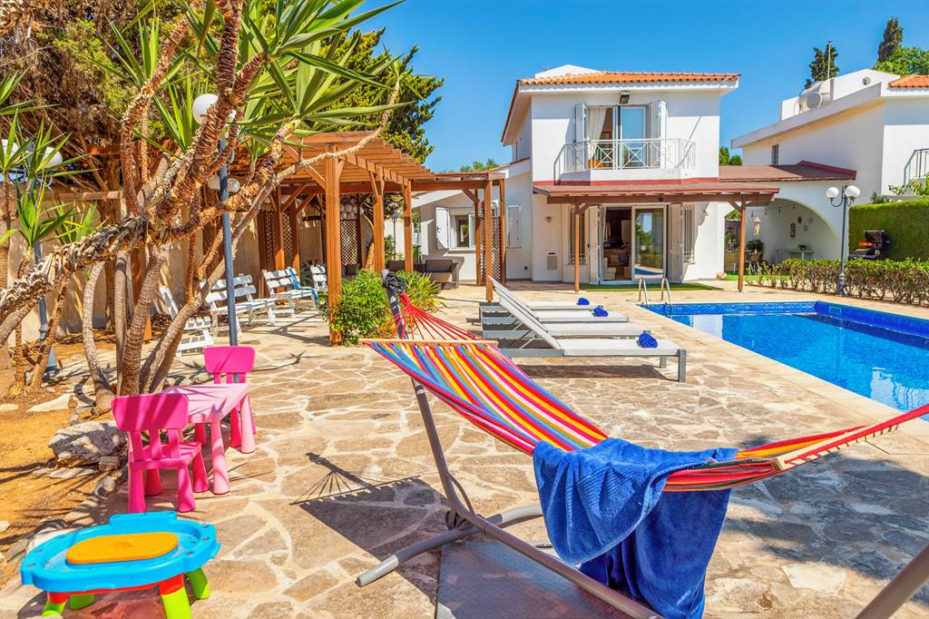 Welcome to the Villa Apollon Seaside, a charming 5-bedroom, 4-bathroom villa just a short walk from Protaras' golden beaches, lively bars, restaurants, and shops. This stylish villa is perfect for families and groups, offering comfort and convenience. Inside, enjoy a spacious open-plan living area, a fully equipped kitchen, and beautifully furnished bedrooms. Outside, relax on the large private terrace, ideal for al fresco dining or sunbathing, featuring a hammock for ultimate relaxation. With its prime location near Protaras' vibrant centre and stunning coastline, Villa Apollon Seaside is your perfect Cyprus getaway. ... More
