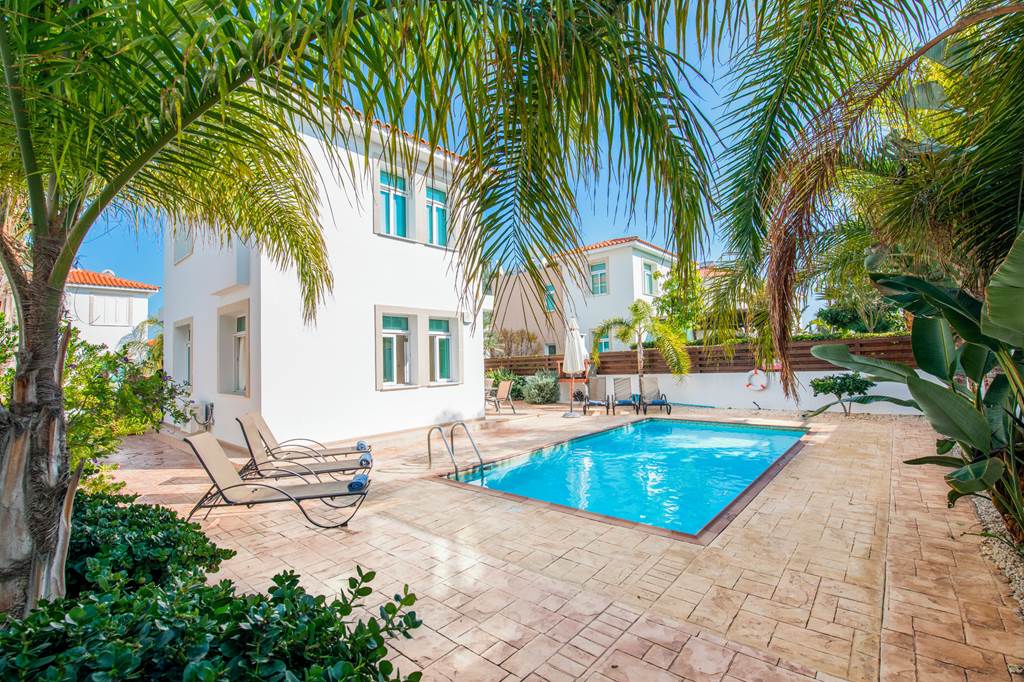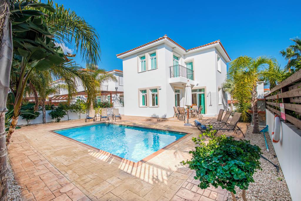 Villa Armostia is a great choice for all. With local amenities at your fingertips, you'll be spoilt for choice when trying to plan your day ahead. The local sandy beach is only 760m away, with its gorgeous crystal clear water, golden sand and rocky features. Villa Armostia comes with a BBQ and a cosy alfresco dining area, right next door to the patio doors leading to the kitchen. Cooking for the family has never been so easy. The pool terrace boasts a refreshing pool, dotted with padded reclining sun loungers and bucket garden chairs. For some reprieve from the sun, head inside to the open-plan living area, where you can cool off under the air conditioning whilst relaxing on the comfy sofa. We loved the cute kitchen with adjacent dining, it comes fully equipped with the latest appliances, dishwasher, and washing machine. Up on the first floor, you'll find three spacious bedrooms, a master double with shower ensuite, and two twin rooms with access to a family bathroom. ... More