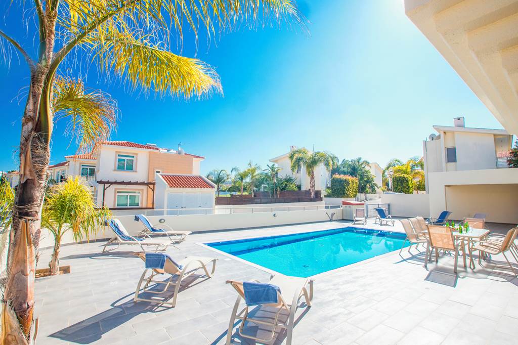 Conveniently located Villa Delfini 1 could host your ideal Cypriot holiday. Sat within neighboring villas, this four-bedroomed property is less than a 1-minute walk to nearby eateries and a 5-minute walk to the nearby shops and supermarkets. An ideal choice for families, the popular resort of Protaras has loads to offer, from international cuisines to sandy beaches, mini golf to water sports. If you're after a day by the pool then look no further than Delfini, where an 8x4m pool looks inviting on a warm summer's day. Relax in style on one of the reclining sun loungers, and enjoy the company of a good book as you top up your tan under the Cypriot sunshine. For alfresco dining, there's a brick-built BBQ and an eight-seater dining table, ideal for a spot of lunch amongst friends or an evening meal under the stars. ... More