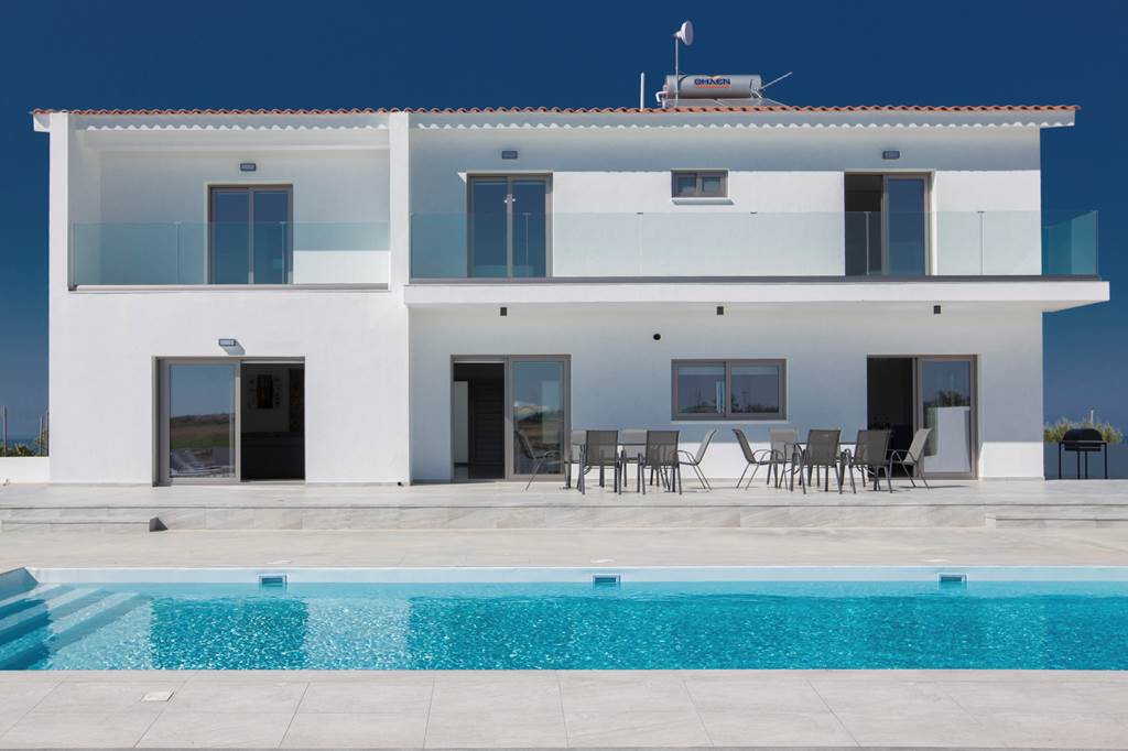 This strikingly contemporary villa has modern and luxurious attention-to-detail throughout. From the expansive sun terrace to the open, uncluttered interiors, you'll have a real sense of spaciousness. This design-led property sits amongst a breathtaking landscape with uninterrupted views too. The villa is furnished with luxury sofas, flat screen televisions and modern art adorning the walls. There's a walk-in shower on the ground floor bathroom and the breakfast bar is a great place to start the day. You'll want to spend time outdoors soaking up the sunshine thanks to the large terrace and private pool with Roman steps. Laze on a sunbed and you'll enjoy views that stretch across the horizon. Explore the area more and you'll find it's just a short drive to the centre of Protaras. It's the place of Fig Tree Bay, one of the island's most beautiful beaches. ... More