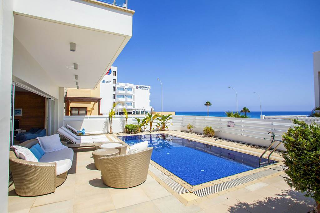 You can't get a more central location than Villa Zinnia. In the heart of Protaras, you're only 100m away from this bustling centre, with its array of restaurants, traditional tavernas, shops, bars and cafes. If you want the best of both worlds, this villa is the ultimate choice. With a beach right on your doorstep, and magnificent sea views, you'll be able to admire your surroundings whilst being so close to the hustle and bustle. The upper balcony provides the best spot for a morning coffee, whilst you admire the lapping waves beyond and the boats sailing along the horizon. Modern in style, this villa has been lovingly designed to make you feel right at home. Bright and airy, this villa is bursting with natural sunlight, whilst the open-plan lounge and kitchen provides the ultimate entertaining space. Spread over three floors you'll find five spacious bedrooms, all with fresh crisp linen and complimentary pool towels for the duration of your stay. ... More