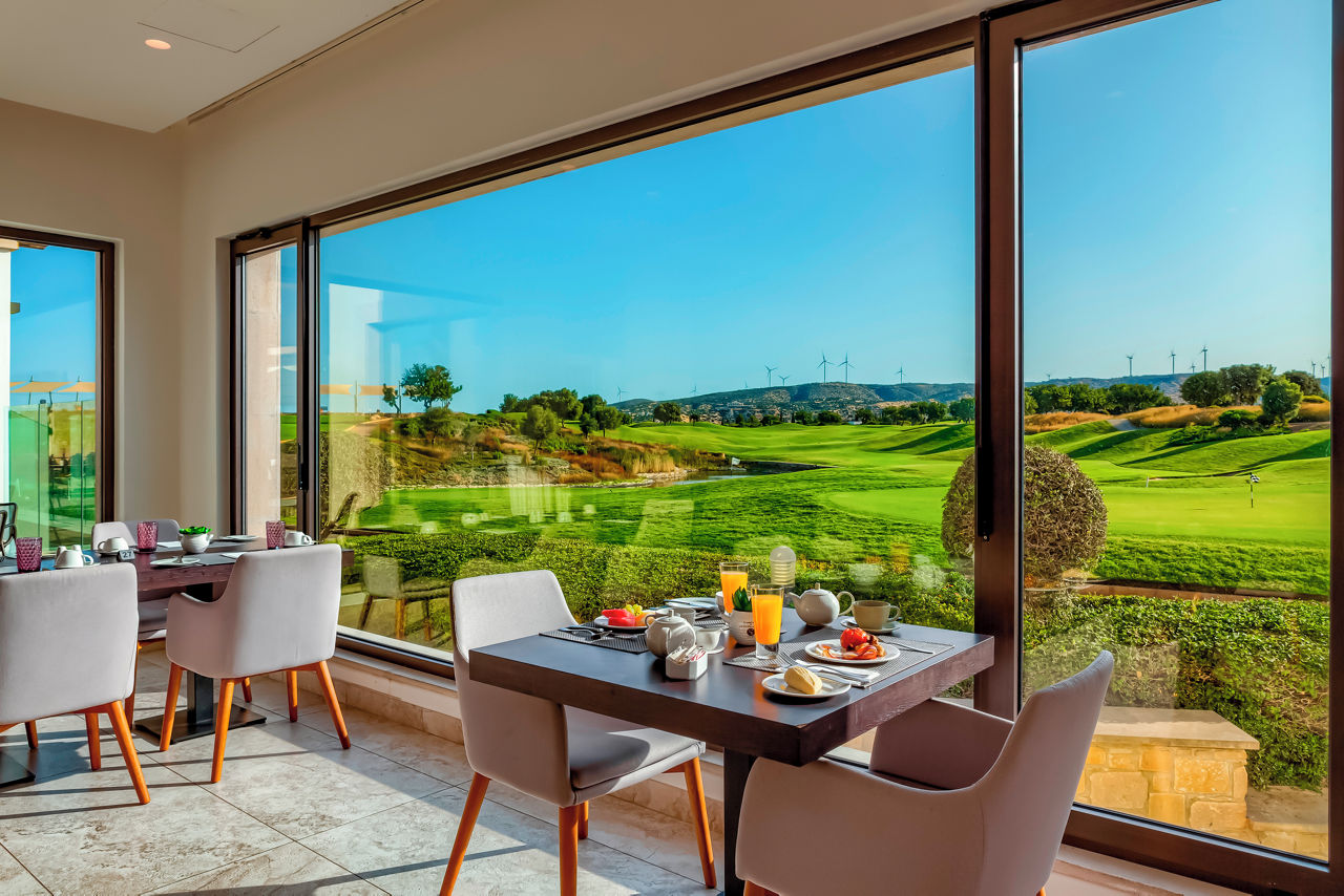 The resort boasts some of the finest on-site active sports facilities, including an 18-hole championship golf course, full tennis courts, an accredited Football Academy and ample space within the grounds for walking, swimming and cycling. Indulge in fine dining at one of the resort’s restaurants and bars or go shopping at the luxury boutiques located in the heart of the resort at the Village Square, which has a charming and traditional Cypriot village atmosphere.