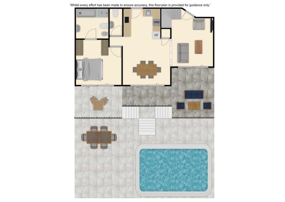 Please note: This property contains wide vertical gaps in the balcony and external staircase railings. Please ensure children remain supervised at all times.