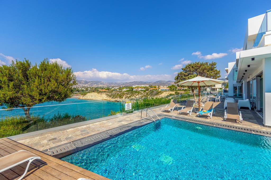 You can’t get more beachfront than this, overlooking the golden sands of Coral Bay Beach, awarded Blue Flag status for its natural beauty. The views from the terrace and balconies are utterly breath-taking and showcase the best of the serene landscape. With your own private outdoor swimming pool flanked by furniture and umbrellas, you can sun-lounge and stare out across the panoramas between refreshing swims. Evenings at Coral Bay Beach Villa never looked so dreamy, with multiple alfresco dining tables for dinner and drinks whilst watching the sensational sunsets. There’s even an outdoor barbecue for any budding chefs wanting to grill up some tasty dishes in the sunshine. ... More