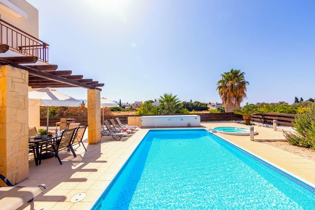 Villa Michael Coral is a great choice for those looking for a Cypriot getaway within Coral Bay. Located just on the outskirts of this popular resort, you'll find local bars, cafes and shops a short stroll away. If you love the beach, then Michael Coral is ideal. The nearby sandy shoreline of Coral Bay is just over 400m away, where you'll find a beach bar restaurant and reclining sun loungers, making for a great day out with the kids. Enjoy spending quality time with the family, building sand castles, and watching the boats sail along the horizon. Alternatively, popular with snorkeling enthusiasts, the nearby beach is full of marine life, as sea creatures nestle in the large rocks that tower above the waves. ... More