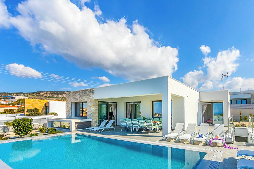 In the beautiful location of Sea Caves, near Coral Bay, Villa Pleiades is an absolute treasure. This spacious villa offers 5 ensuite bedrooms and divinely decorated interiors that really make you feel special. Outside on the terrace, enjoy a home cooked meal or barbecue in the shade or get out on the sun loungers provided to enjoy that Cypriot sun. Many local amenities are within reach at this property, a short drive away will lead you to the centre of Coral Bay where you can experience the marine life by snorkelling or boat tours which are much loved in the area. Alternatively, explore the local cuisine and shopping experience with plenty on offer. ... More