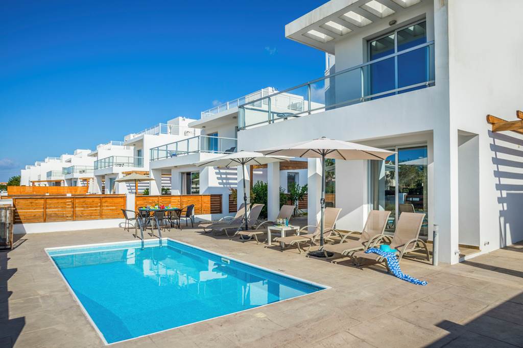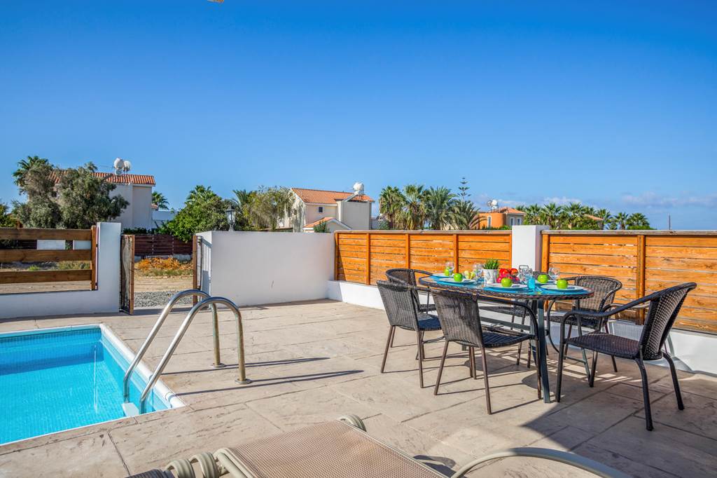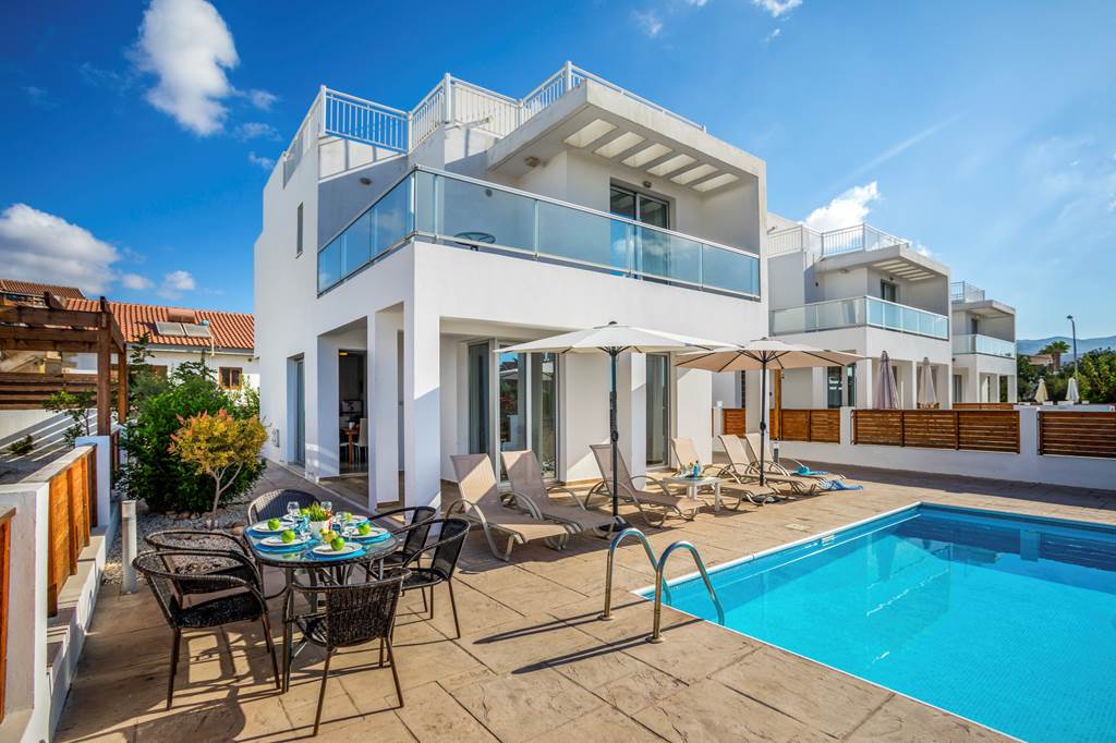 This villa is ideally placed if you want to enjoy the popular resort of Coral Bay, which is less than 1km away. It's also close to plenty of bars and restaurants as well as a lovely sandy beach. The villa's interiors have a clean, modern style with a fully equipped kitchen and a lounge that has comfy sofas and a flatscreen television. All bedrooms have patio doors to let the light in too. There are great sea views from the first floor sun terrace, while you could also take a dip in the private pool. For a change of scene while you soak up the sun, it's just a 900m walk to Coral Bay's sandy beach. If you'd like to enjoy even more activities and attractions, the city of Paphos is around 12km away by car. ... More
