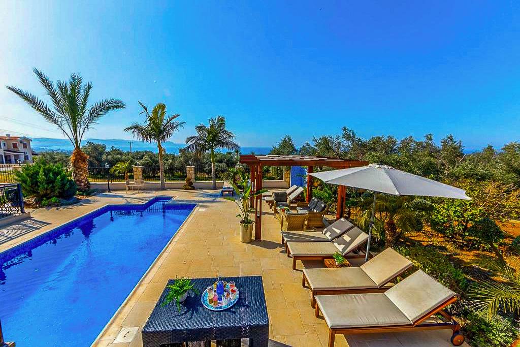 A wonderful base for fun in the sun, Petrides Villa has everything you need to make fantastic memories with your favourite people in tow. Located in the heart of the picturesque Argaka countryside, this stone-built villa is gorgeous in every sense, boasting all of the components that make a stunning holiday home. The outdoor space in particular is incredible, with its large private swimming pool, complete with a water feature, which really is at the heart of this villa. Here you can enjoy days floating around the pool as the Cypriot sun beams down. The spacious sun terrace also boasts comfy sun loungers, a shaded seating area that is ideal for getting lost in a good book, as well as barbeque facilities which make al fresco dining easy. However, it is this villa’s bar area that really sets it apart, providing a fun space to enjoy relaxing drinks in the afternoon (it’s always 5 o’clock somewhere!) or drinks well into the evening when the sun goes down. After all, when you’re staying in a villa like this, there’s no reason to leave. This villa also boasts terraces and balconies that provide wonderful views of the countryside and coastline, allowing you to take a moment to reflect on your holiday. ... More