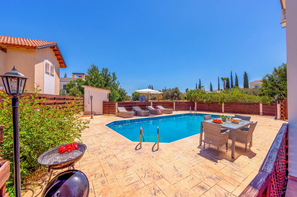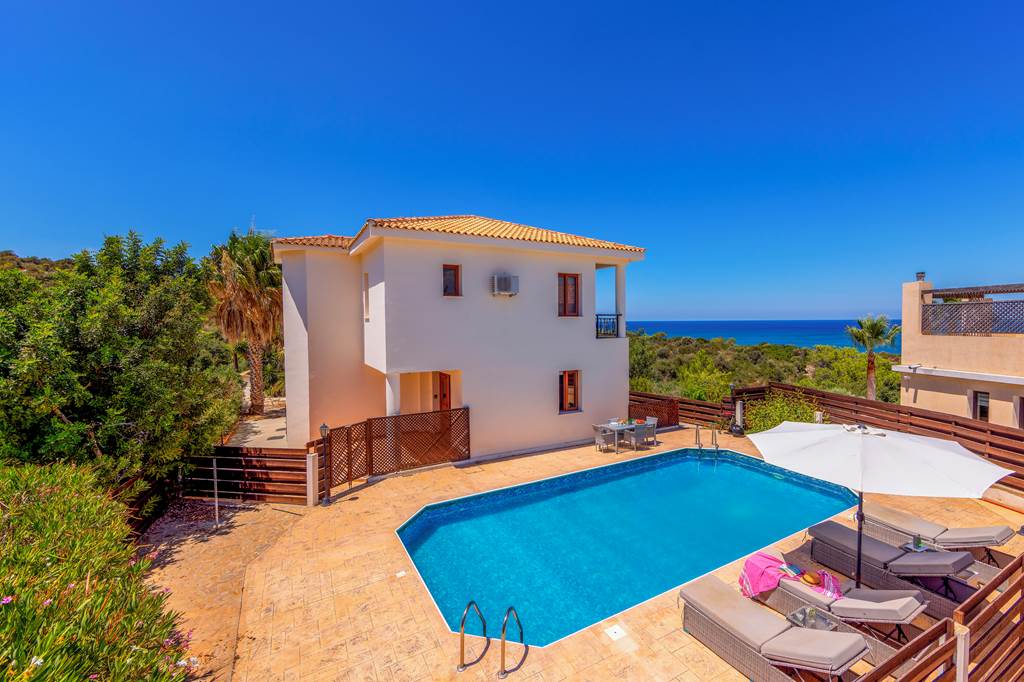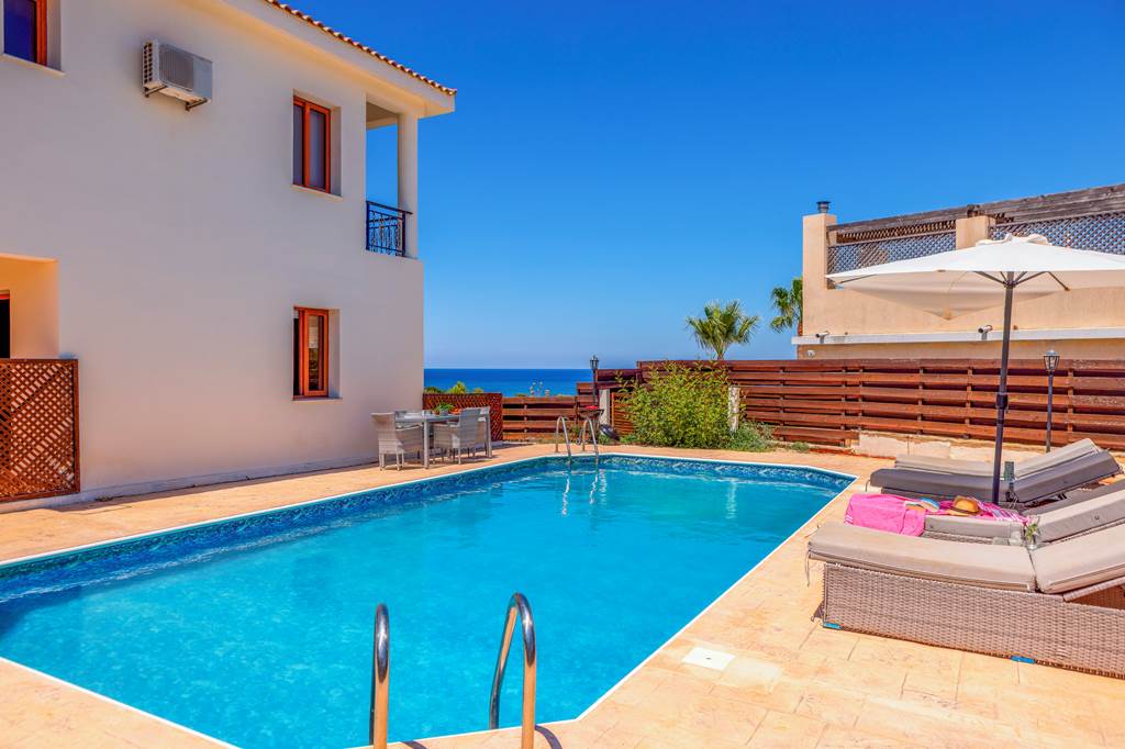 Located just 250m from the beach, Villa Korona is a great choice for those who love to catch the waves. With a coastline stretching over 8km, Latchi is an ideal choice for those who prefer a day at the beach. The sandy shore is dotted with beach bars, cafes and tavernas, serving up delicious homemade dishes, Mezze platters and local beers. For days spent relaxing by the pool then make the most of the terrace back at Villa Korona. The refreshing pool is great for cooling off from the midday sun or splashing around with the kids. Pull up a sun lounger and catch a few rays as you top up your tan with a cocktail in hand. The pool is fenced off on either side, whilst a cosy seating area around the side of the villa boasts views of the treetops and the sea in the distance. The ground floor features an open-plan living, dining and kitchen area, whilst the upstairs boasts three modest bedrooms complete with cool air conditioning and balcony terraces. ... More