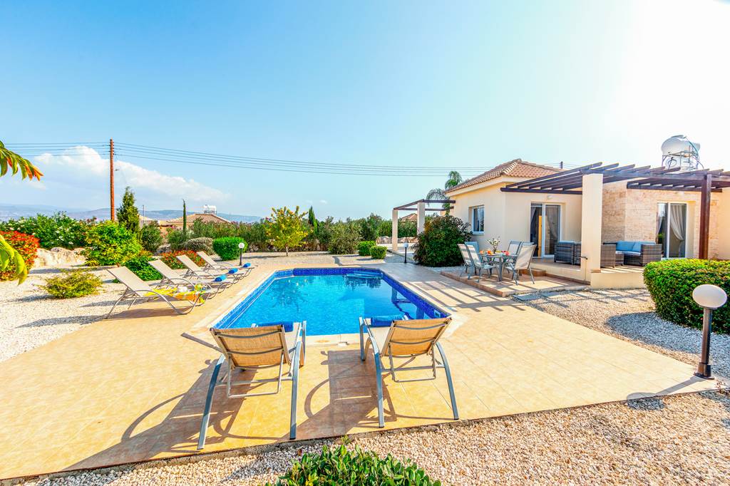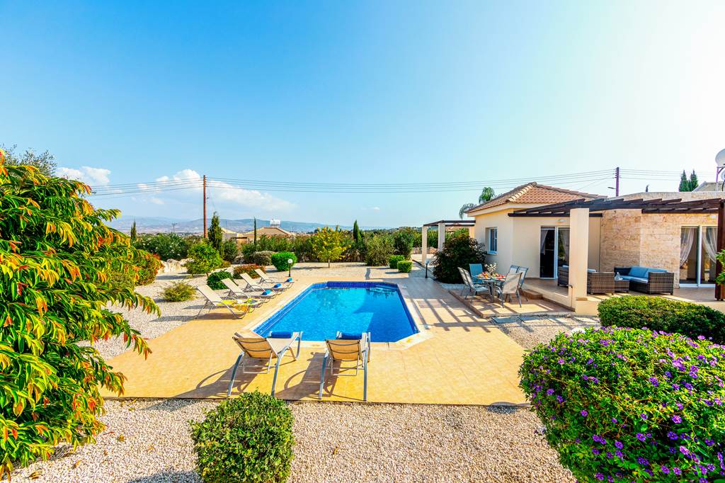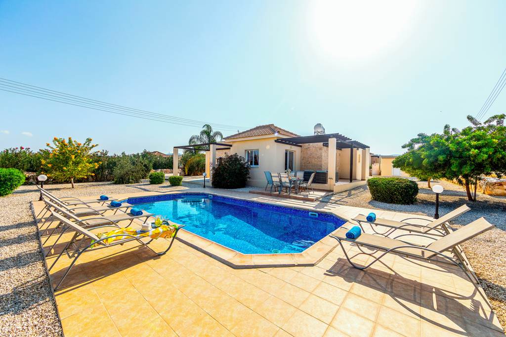 Villa Orange Tree is a relaxing rural getaway surrounded by a serene backdrop of green valleys and vineyards. The best of both worlds, this peaceful retreat is still close to the action, with the vibrant resort of Latchi just a five-minute drive away. It is packed with local tavernas, traditional restaurants, and international eateries where you can sample the vibrant local cuisine. Back at the villa, head out onto the fantastic pool terrace, where a stunning swimming pool invites you to cool off from the sizzling Cypriot sun. On the terrace, you can enjoy not only perfectly picturesque alfresco dining but also a rustic stone barbecue for whipping up an outdoor feast. With comfy rattan outdoor furniture, sit back and relax in the cool sea breeze. The large patio doors lead you into the brilliant open-plan lounge space, made inviting and bright thanks to the fresh white colour scheme, minimalist style and contemporary furnishings. The living room is a cosy nook featuring two plush sofas and a wide-screen television. The spacious kitchen has everything you’ll need to cook up dinner for the whole group, which can be enjoyed at the large, sleek dining table. When it’s time to rest, you have three elegant bedrooms to choose from, with one double and two twin beds at your disposal. ... More
