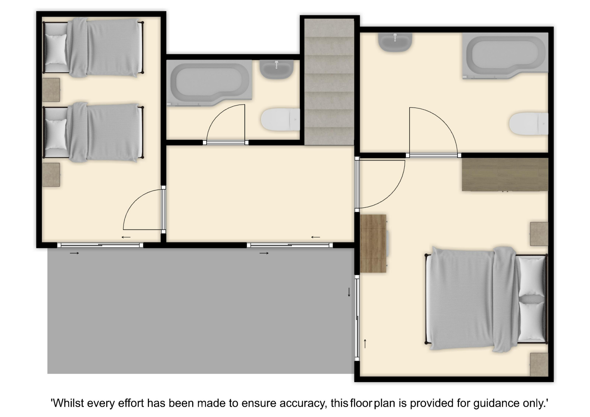 Please note: This property contains large gaps in the internal staircase railings. Please ensure children remain supervised at all times.