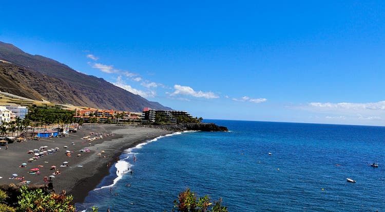 Puerto Naos Beach is known for its beautiful black volcanic sand, which creates a striking contrast with the deep blue waters of the Atlantic Ocean. The beach is fairly long, making it ideal for leisurely walks. It also has amenities like sunbeds and umbrellas, making it comfortable for visitors looking to relax.